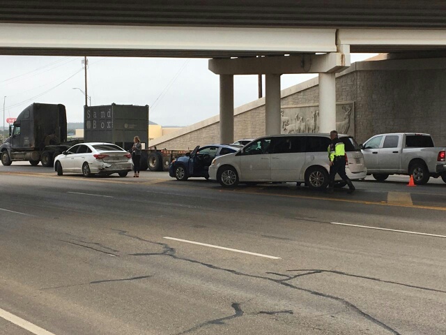 SAN ANGELO, TX -- Three Cars collided under the Loop 306 overpass at Sherwood Way Thursday afternoon.  According to San Angelo Police Officer Brian Bilsma, a white 2016 Hyundai Sonata was the front car, the blue car in the middle was a 2015 Honda Civic and a 2013 Dodge Caravan was in the back.
