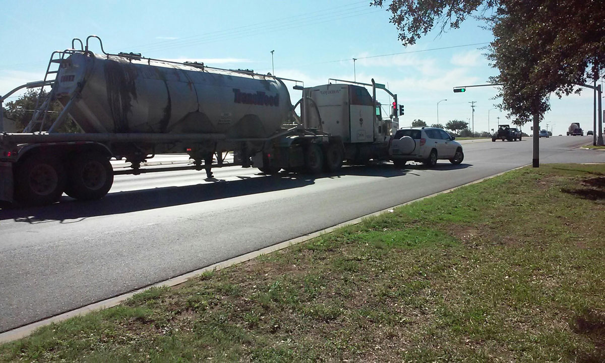 According to San Angelo police, the sand truck was headed south on Bryant. As the big truck approached the intersection of S. Jackson St., the driver realized too late that the cars were stopped awaiting a red light.