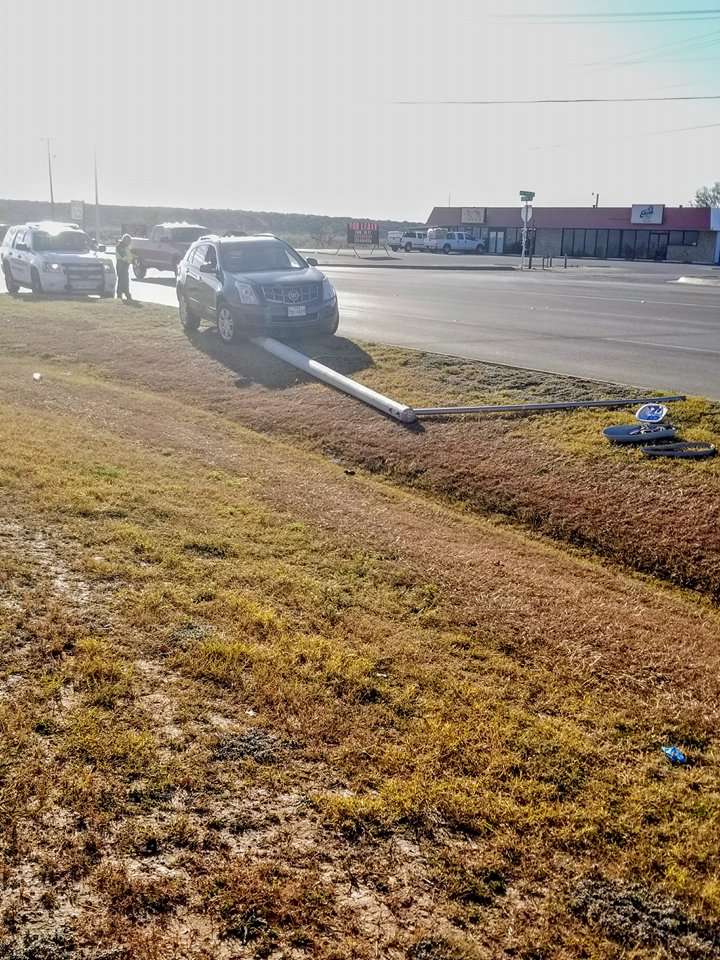 SAN ANGELO, TX -- The driver of a Cadillac SUV took out a light pole at the corner of Knickerbocker Rd. and Red Bluff Rd. this afternoon.
