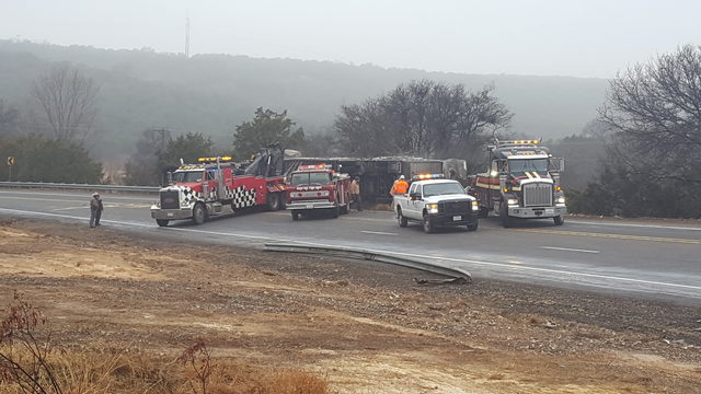 U.S. 277 is closed between FM 89 to FM 1235. The truck was hauling cattle and overturned shortly after 7 a.m.