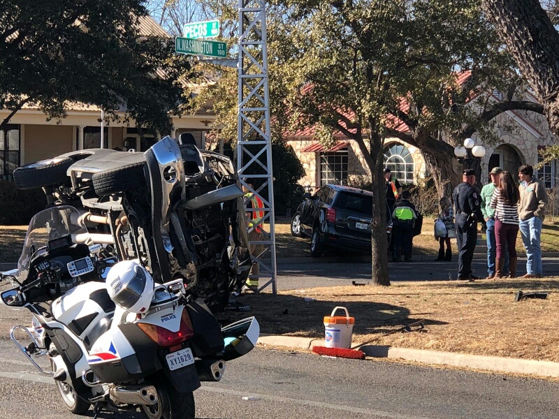 SAN ANGELO, TX -- A violent collision between a Dodge Ram Pickup and a Chevy Equinox at the intersection of Pecos and Washington sends the pickup into the curb Tuesday afternoon and the pickup landed on its side.