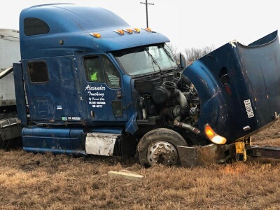 McMillan says the driver said he was using his cruise control in the wet and slick conditions and lost control. The truck was empty and slid into the median and turned on its side. A passenger in the sleeper was transported to a San Angelo hospital.