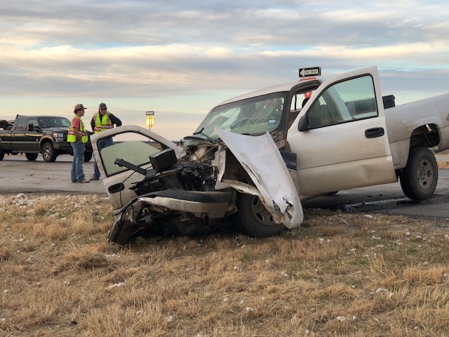 SAN ANGELO, TX -- A white, single cab pickup crashed into a sand hauling 18-wheeler Sunday evening on U.S. 87 near Debus Rd. in the Wall area East of San Angelo.