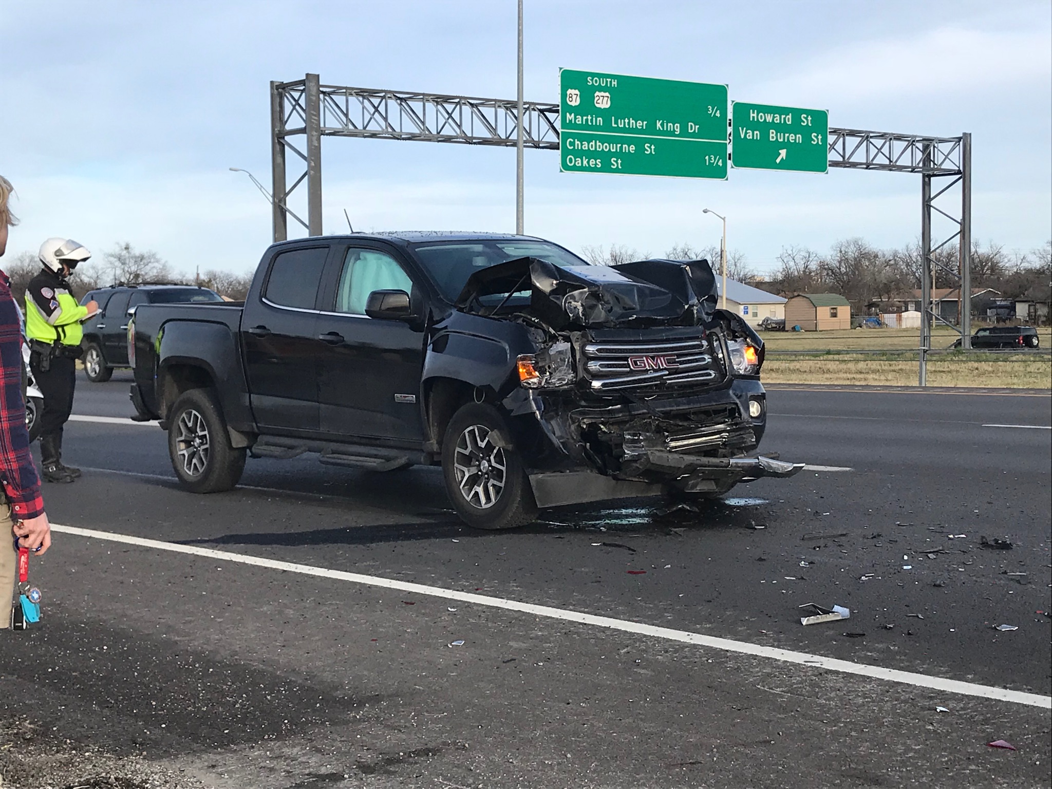 According to investigating San Angelo Police Officer Bradshaw, the Dodge SUV and the Black GMC Canyon were attempting to enter the loop. The driver of the Dodge SUV stopped because of heavy traffic and the driver of the Canyon was looking back at the traffic and hit the SUV from behind.