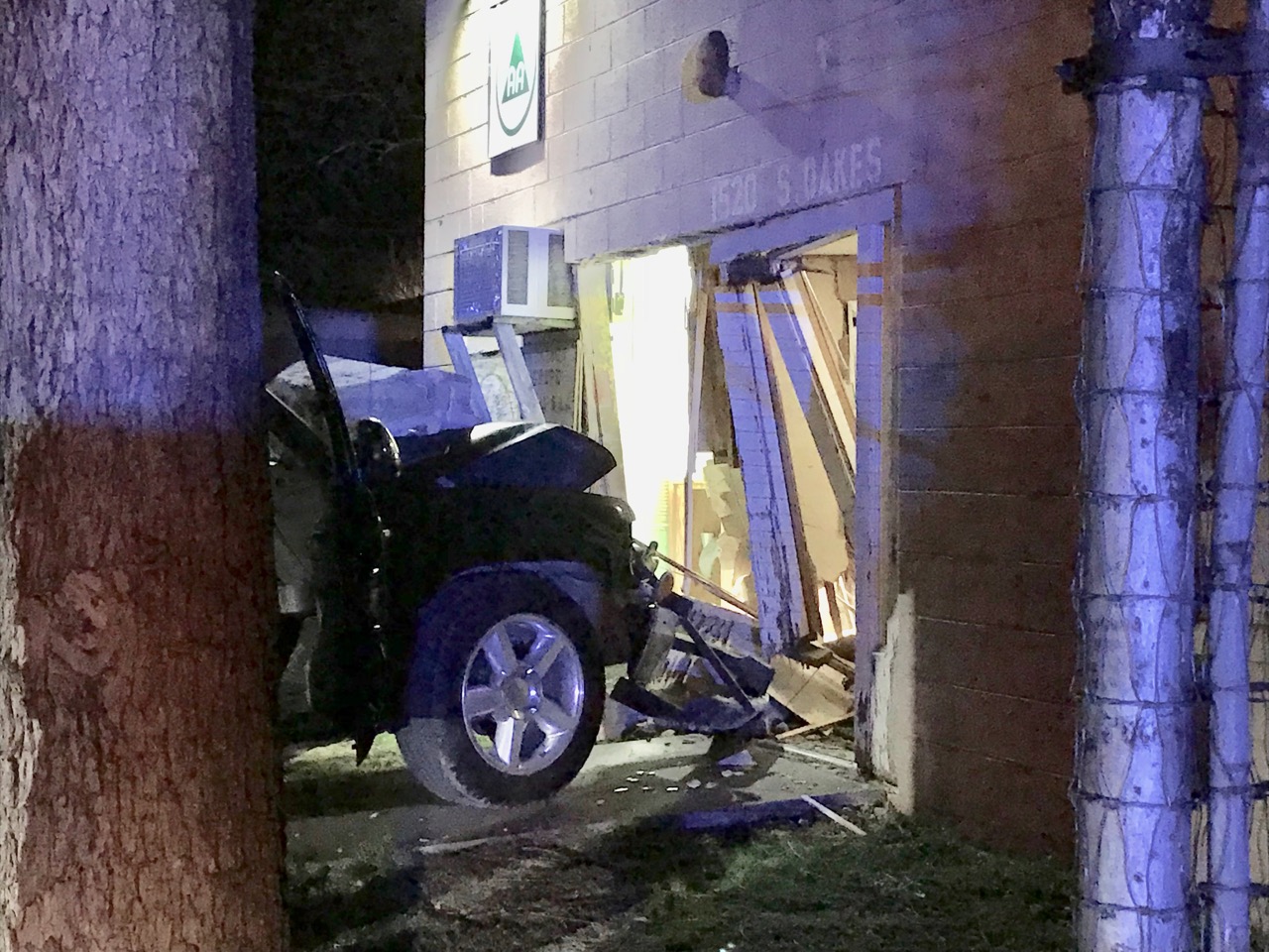 According to San Angelo police, there was a meeting underway inside the building when the pickup crashed through the front doors. One person inside the building sustained minor injuries.