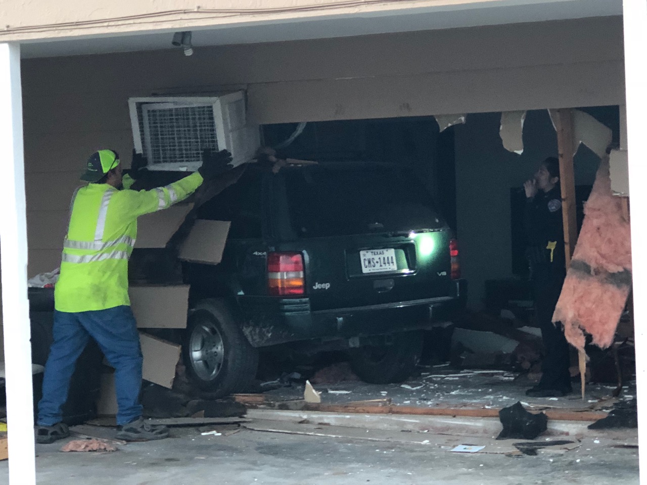San Angelo police said the driver and a two-year-old boy passenger, who was properly restrained, were rushed to Shannon Medical Center with minor injuries. There was no one home when the Jeep drove into the home’s kitchen.