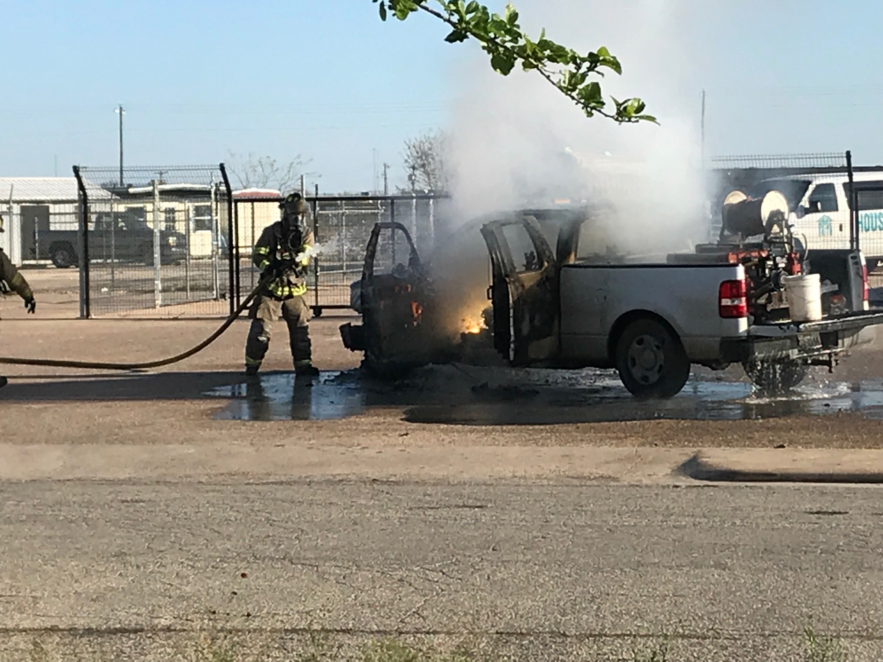 According to Captain Mowery with the San Angelo Fire Marshall’s office, the driver of the pickup said he smelled smoke and pulled over. Firefighters were called to the scene and extinguished the blaze. The vehicle appears to be a total loss. No one was injured in the fire.