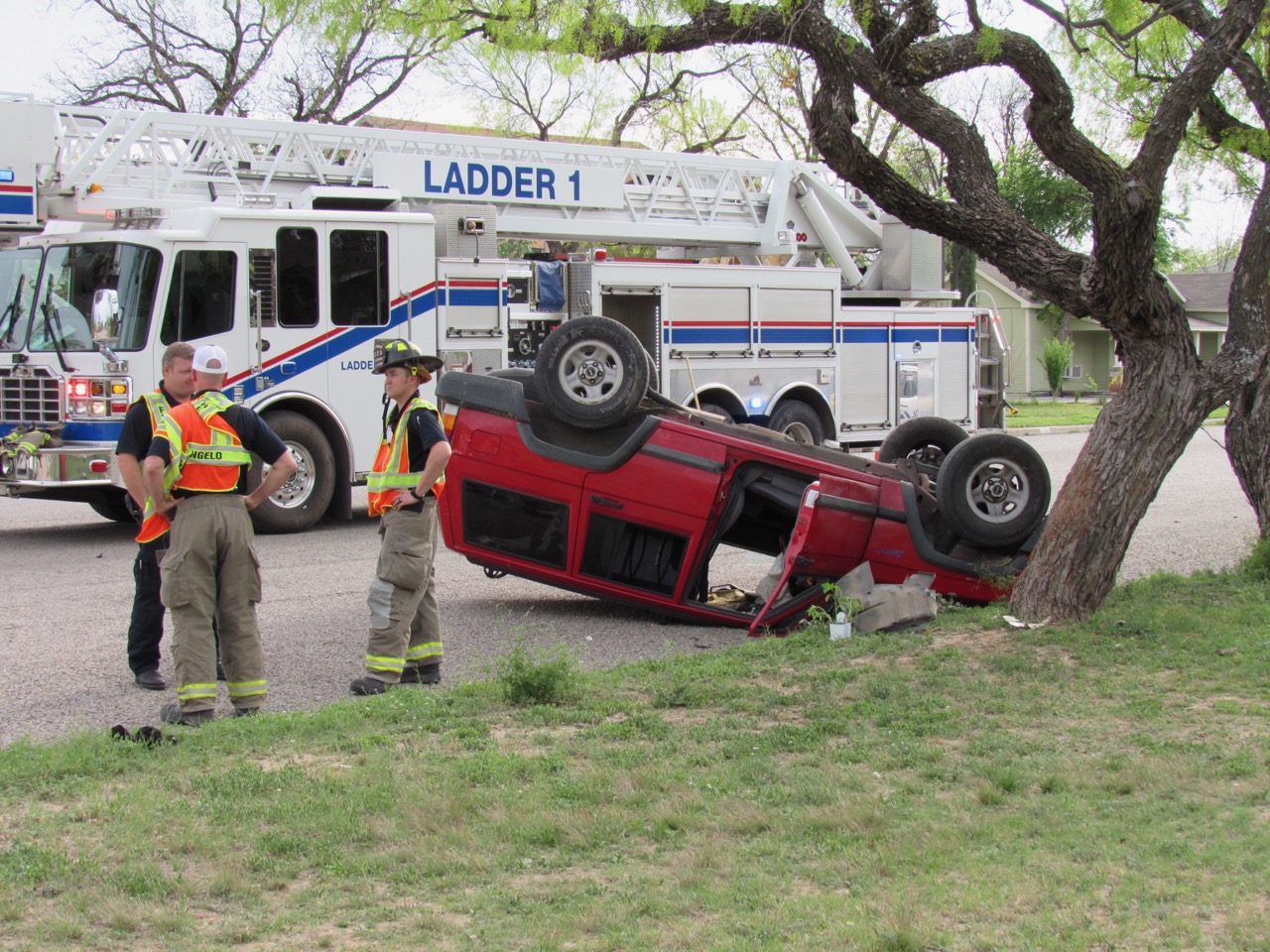 SAN ANGELO, TX — In the 700 block of Koberlin, a driver of a Jeep was distracted and ended up driving up the side of a tree. Then the Jeep came down and rolled over.