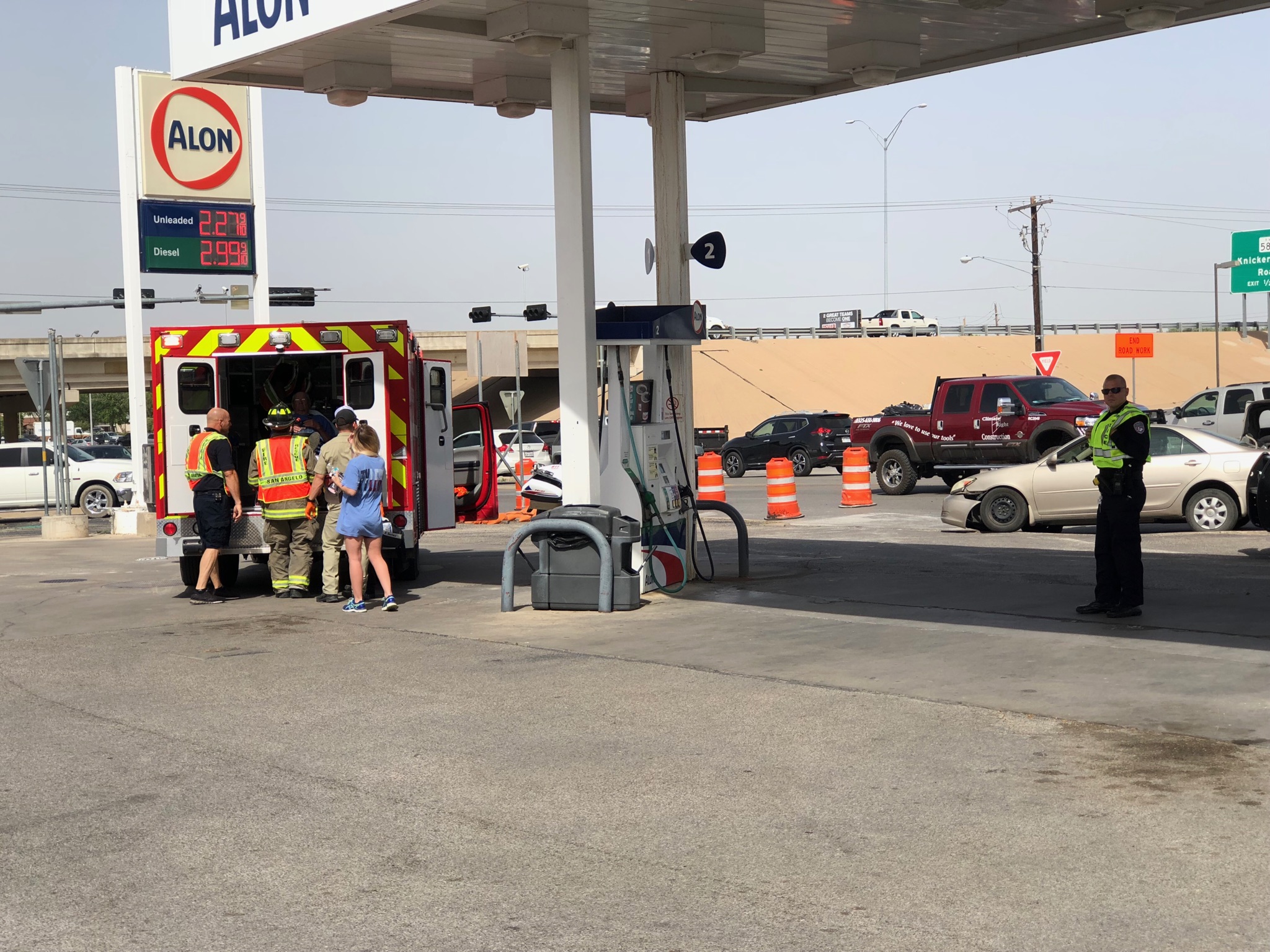 According to SAPD investigating officer Bradshaw, two vehicles were traveling toward the loop on College Hills Blvd.  when the white pickup slowed to make the right turn onto the loop when the tan Toyota Camry passed on the left where prohibited.  The white pickup then turned left and the vehicles collided.