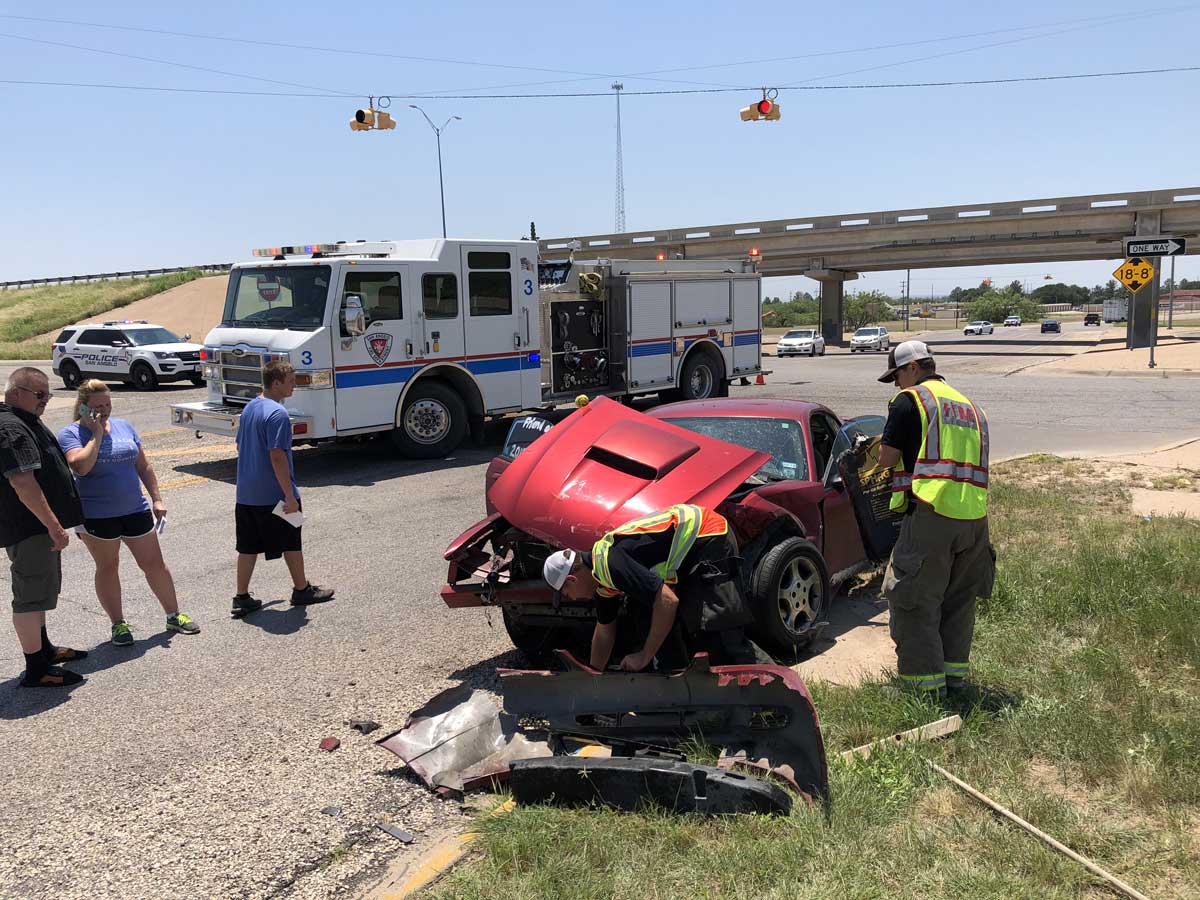 SAN ANGELO, TX — Skid marks tell the story. A maroon-colored Ford Mustang was west on the Houston Harte frontage road and its driver did everything he could to avoid a stop sign-running driver of a silver Buick.