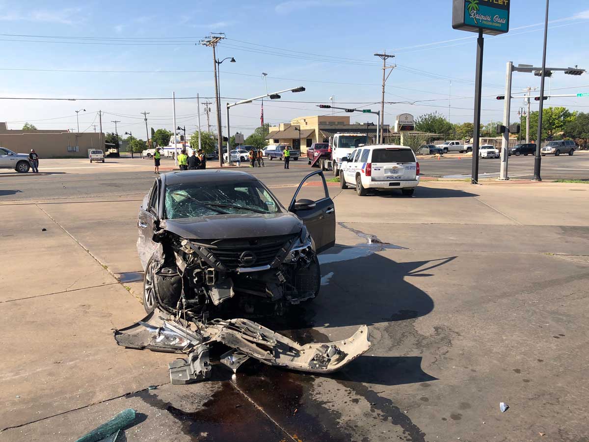 SAN ANGELO, TX — The driver of a black passenger car ran a stoplight at N. Chadbourne St. and 19th St., crashed into a pickup, and then fled the scene with citizen witnesses in pursuit, one with a handgun.