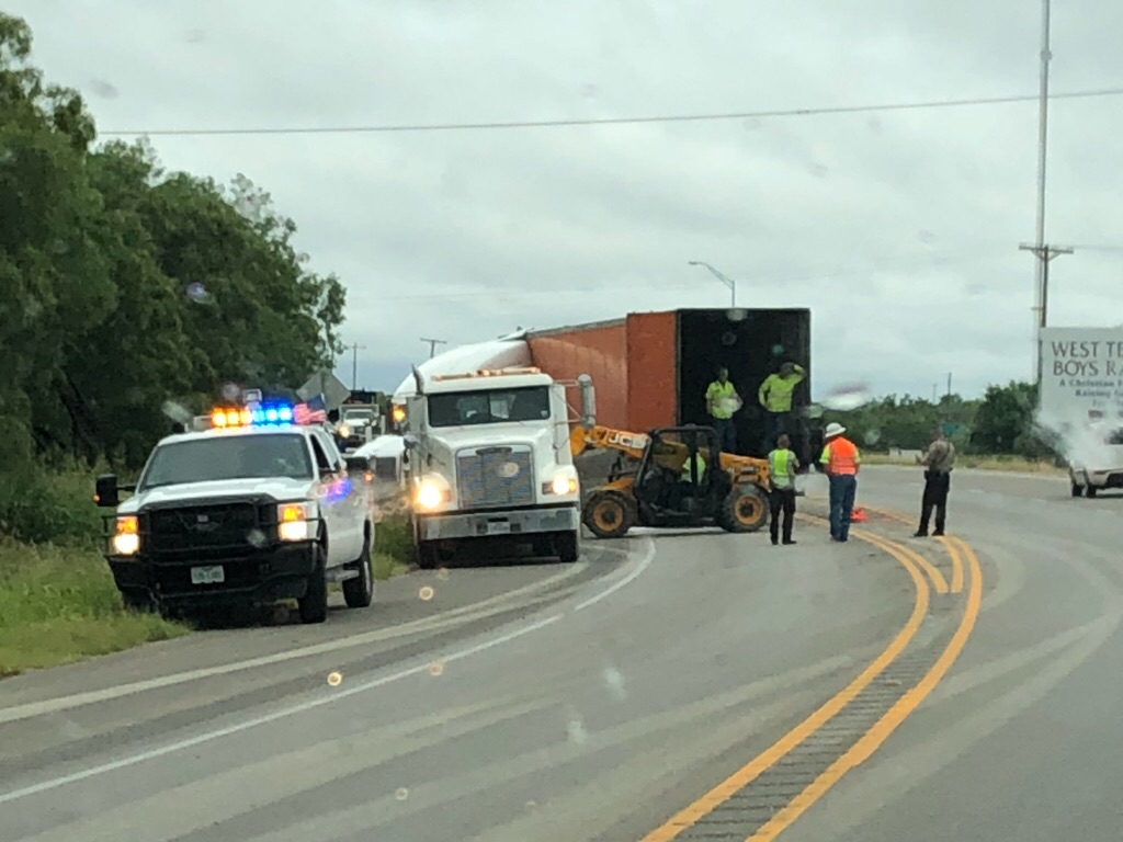 SAN ANGELO, TX -- An 18-wheeler jackknifed early Monday morning on U.S. 67 and FM 2335 reducing driving to one lane on the busy Mertzon highway at the Boys Ranch turn off in the curve near Tankersley.