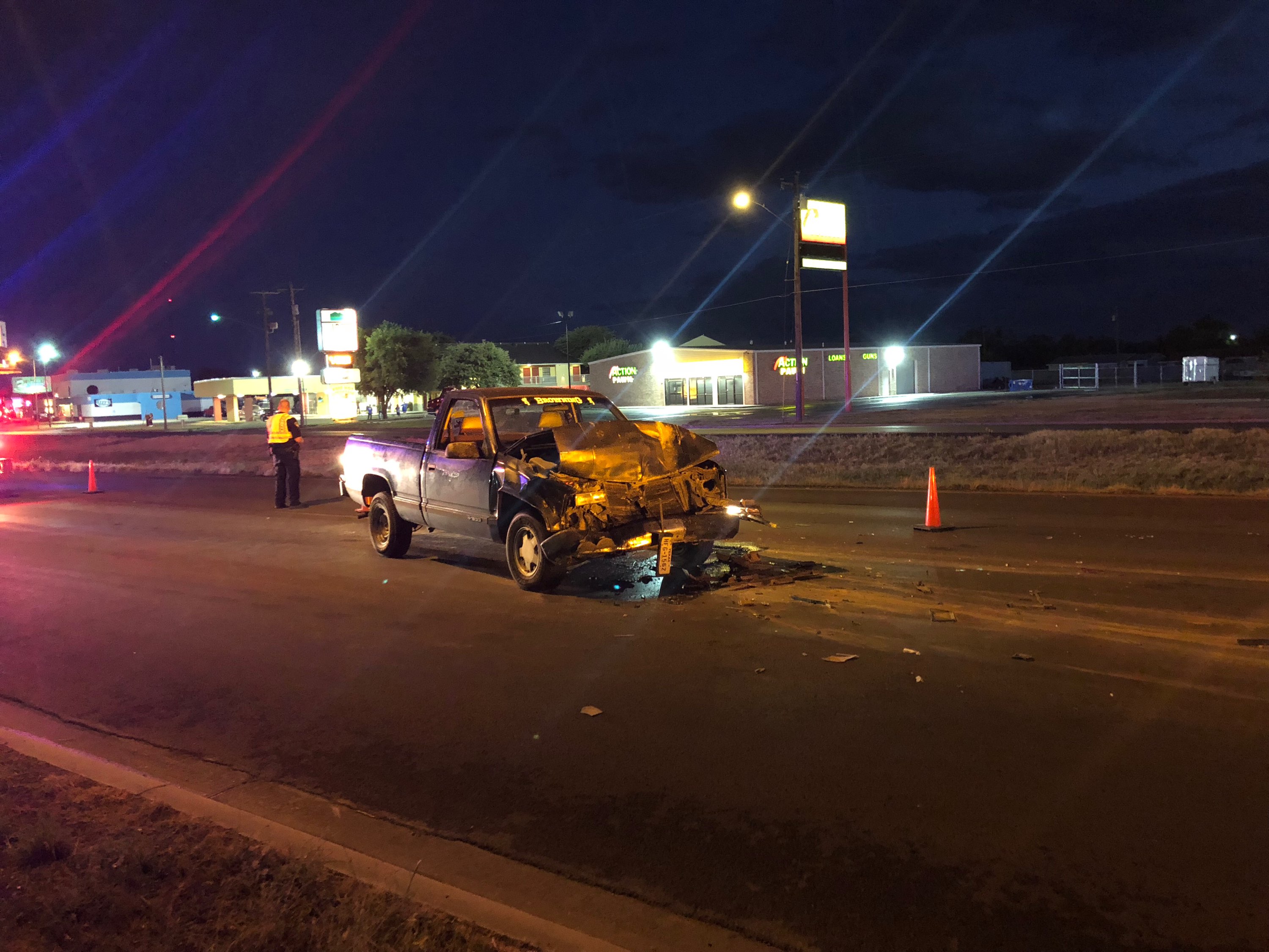 SAN ANGELO, TX -- One person was transported to the hospital Sunday evening after a black Chevy pickup rear ends a red pickup on N. Bryant near 23rd St.