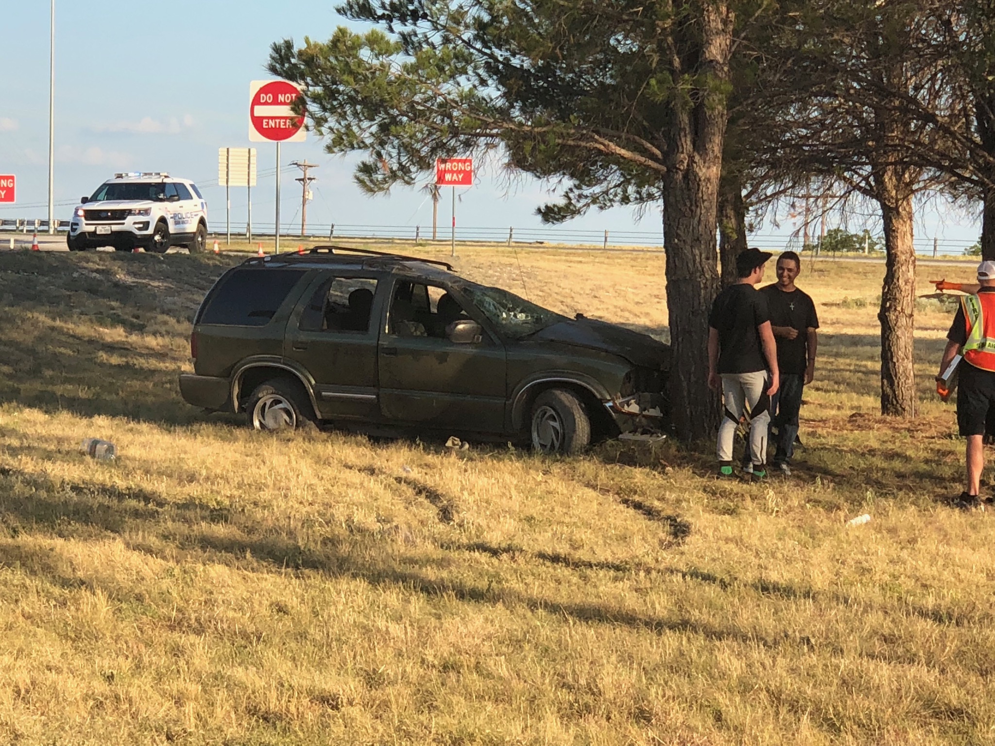SAN ANGELO, TX -- The driver of a brown SUV escaped serious injury Tuesday evening after losing control of his vehicle and flipping coming off Knickerbocker Rd. at Loop 306. According to investigating SAPD Officer Gochenauer, the driver was traveling at an unsafe speed and lost control of his vehicle.