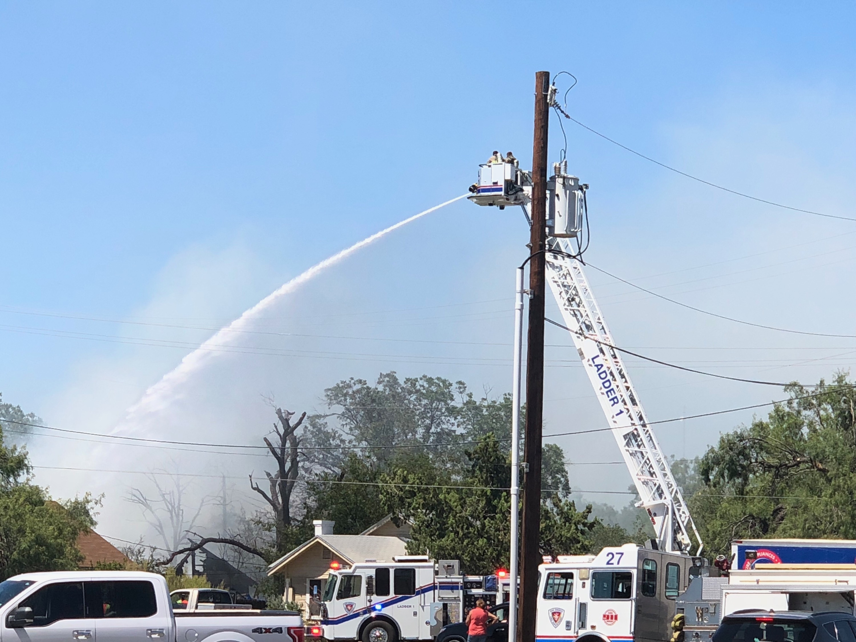One other local media source reported a residence was destroyed. That is not true according to Donoho. There was no visible damage to the residence. Firefighters were still putting out hotspots.