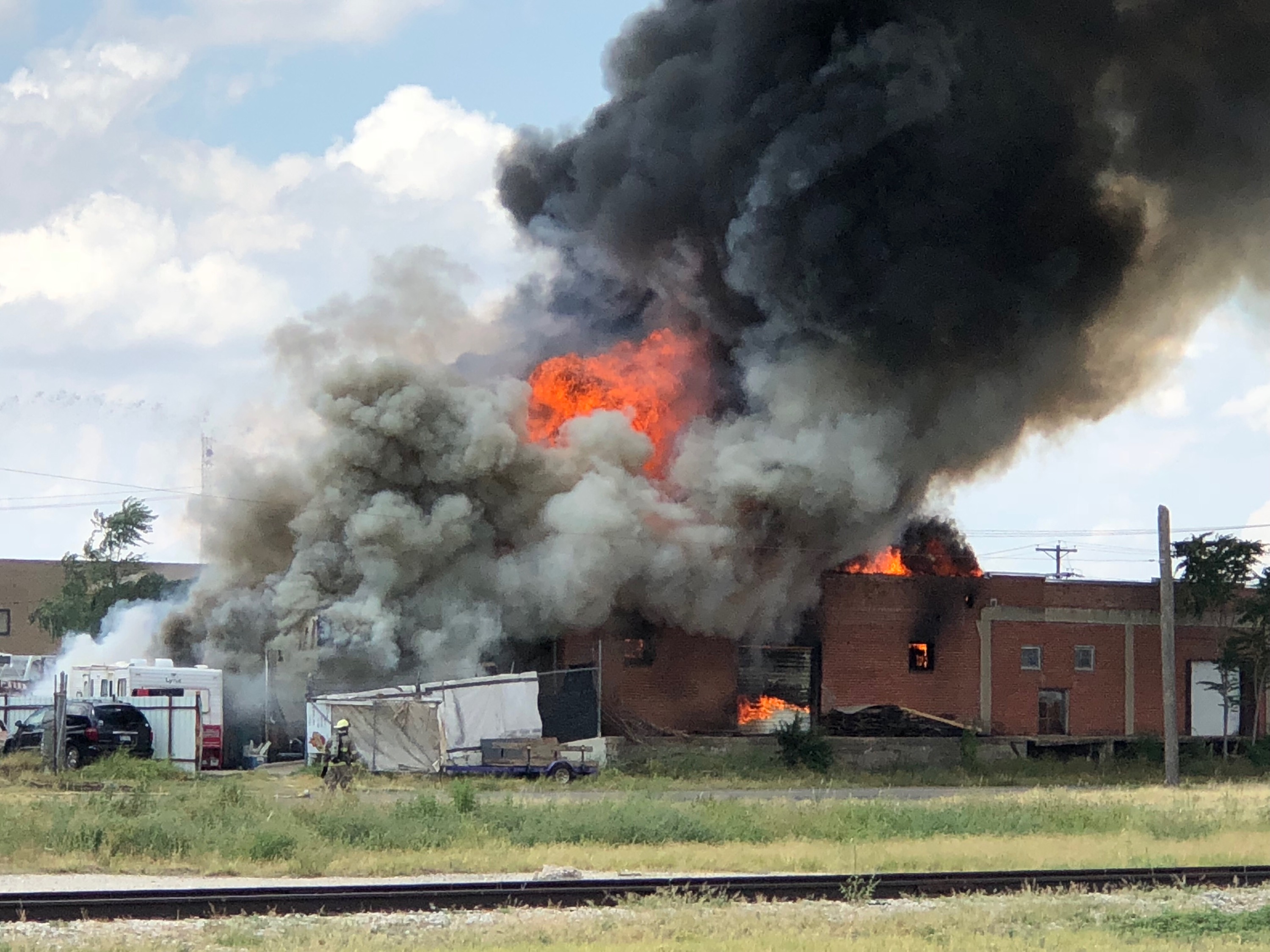 The structure is a complete loss.  Firefighters battled the blaze from all sides and there was a small grass fire that was contained next to the structure.