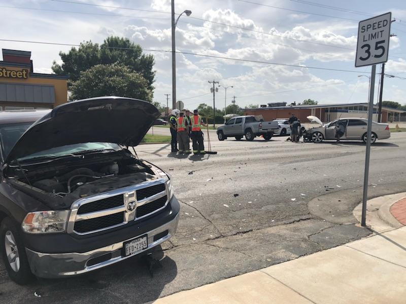 SAN ANGELO, TX -- The driver of a beige Ford Fusion crashed into a Dodge Ram pickup in the 1500 block of N. Chadbourne St. Friday afternoon blocking traffic.