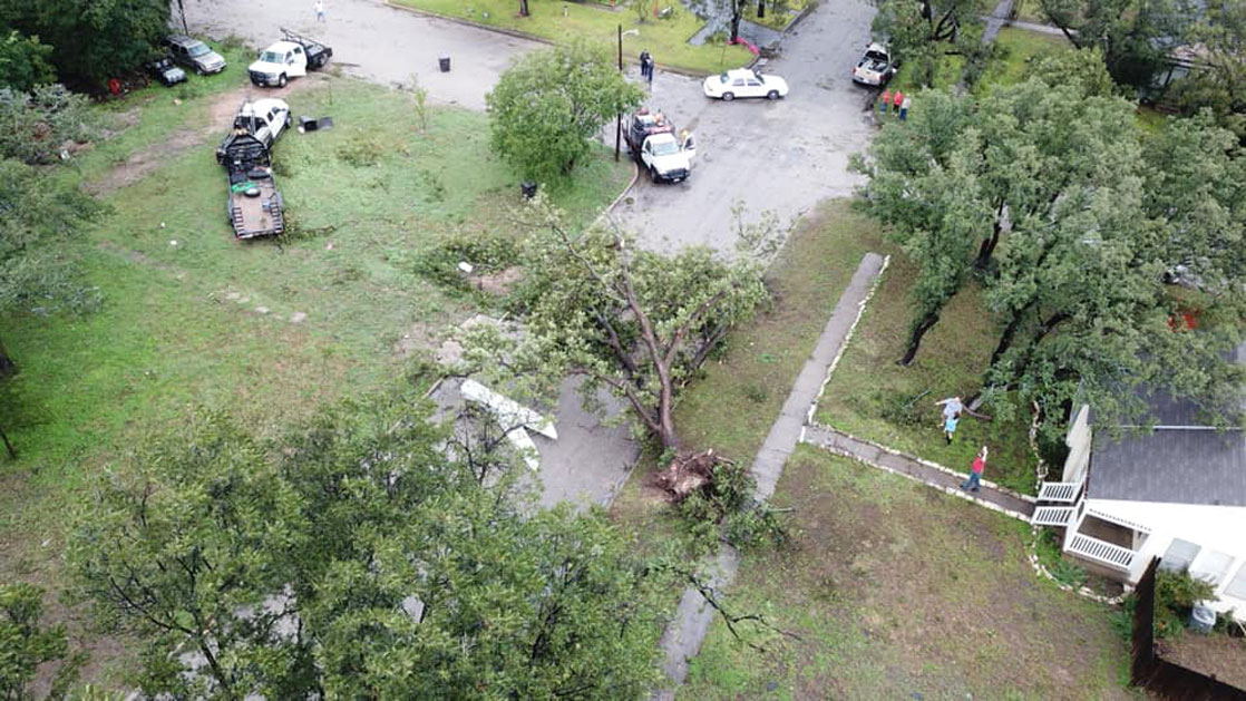 Cosmetic damage to trees. Oh my goodness where is the Red Cross and FEMA. We have cosmetic damage to trees. REALLY. Just post the news don't make it into fake news please. I feel for Brady, but the way you post it the first thought is the entire town is destroyed then you say what I put above.