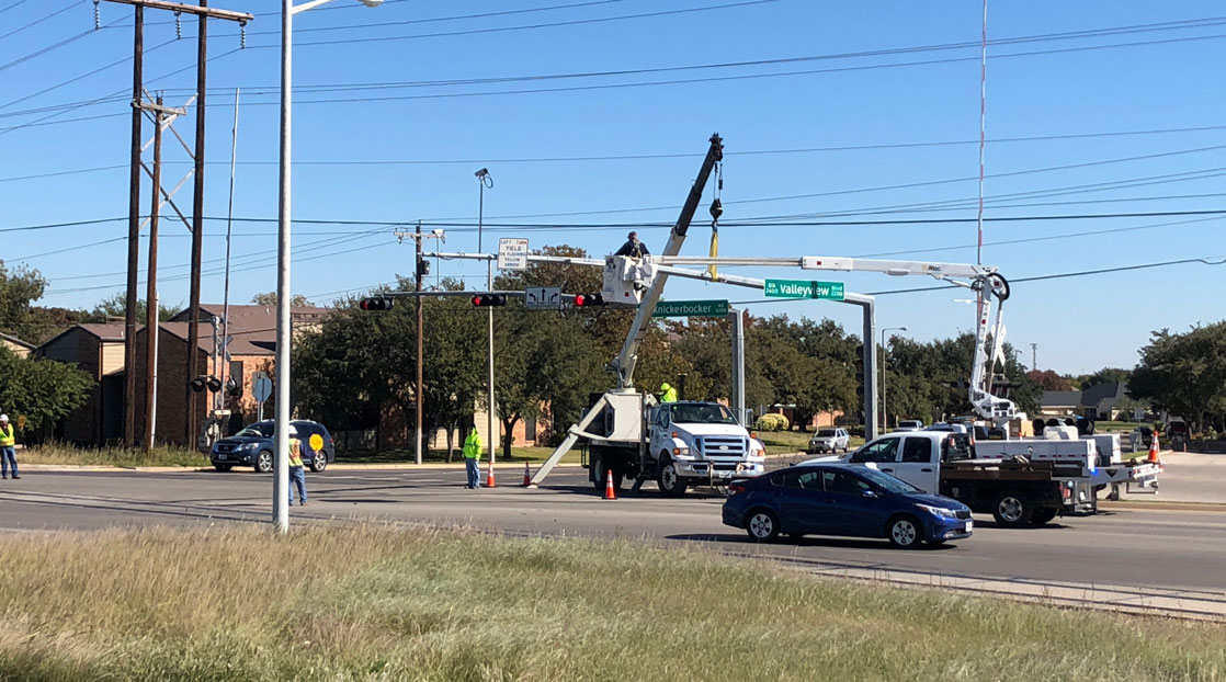 UPDATE 11/15/18 3:30 p.m. The traffic signal at Knickerbocker Road and Valleyview Drive was damaged Wednesday, Nov. 14.