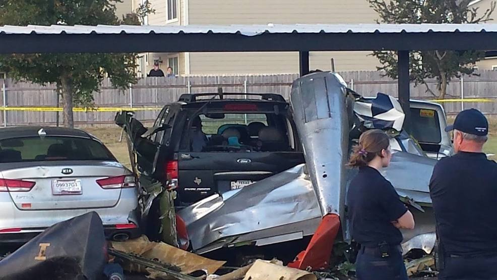 KTXS is reporting the plane was performing aerobatics before it crashed into the parking lot at The Terraces at Creek Street Apartments at 3:15 p.m.