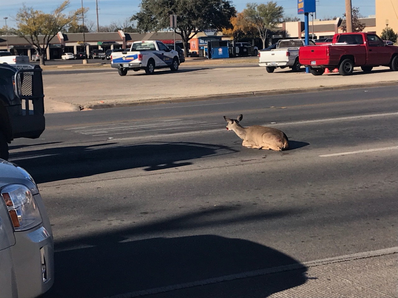 Reporters on the scene say the deer appeared to be injured.