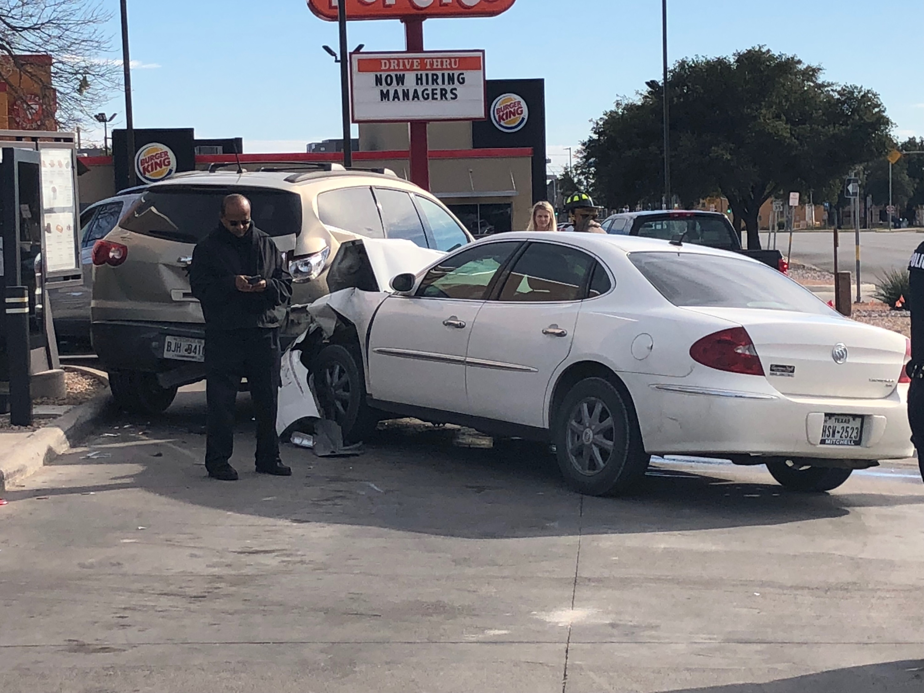 Officers on the scene say no one was injured. The Buick crashed into a tan Chevy SUV which then crashed into a GMC Acadia.