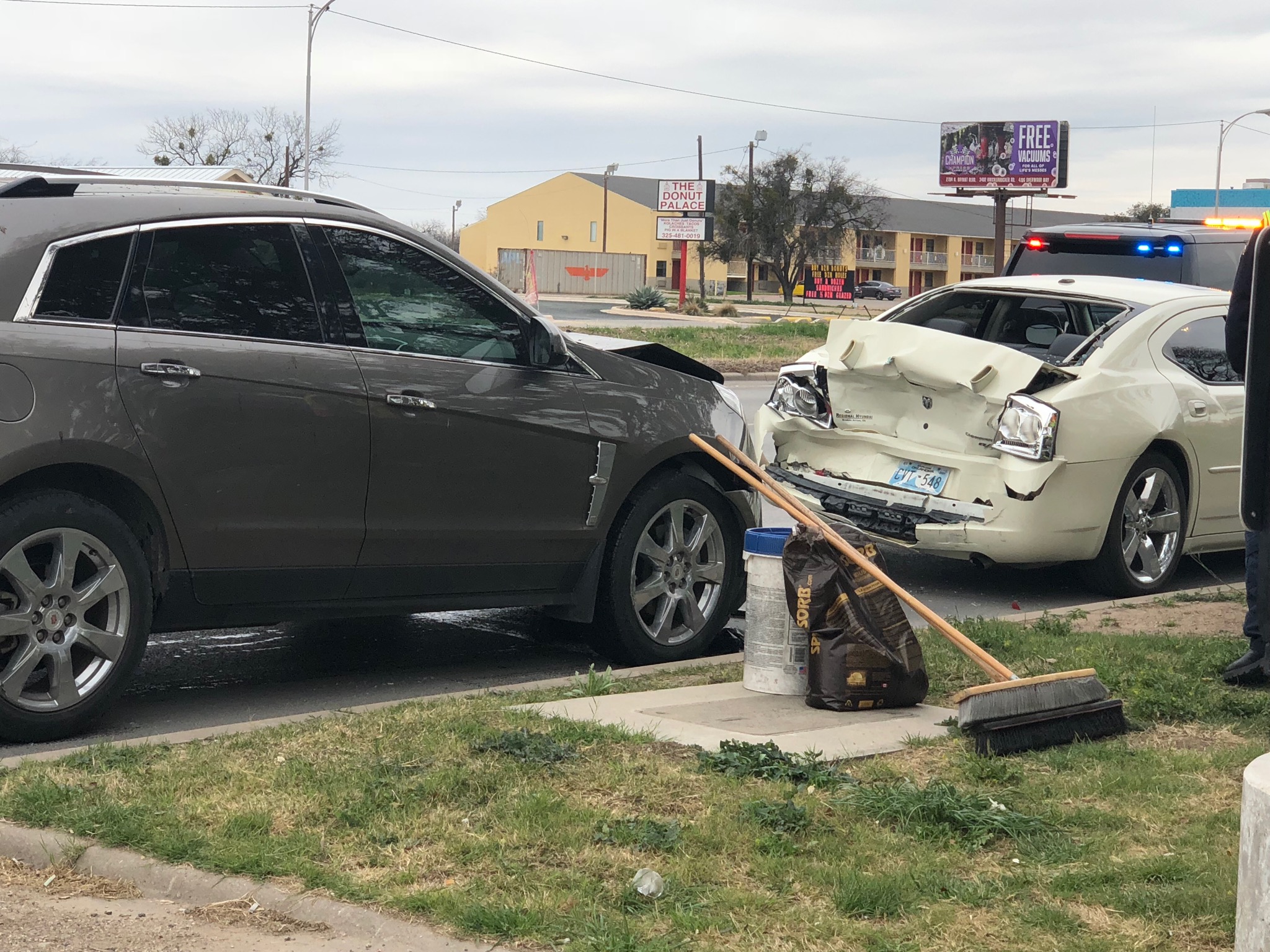 San Angelo Police Department investigating officer Welch said the driver of a white Dodge Charger was in the far right northbound lane of N. Bryant stopped at the light.