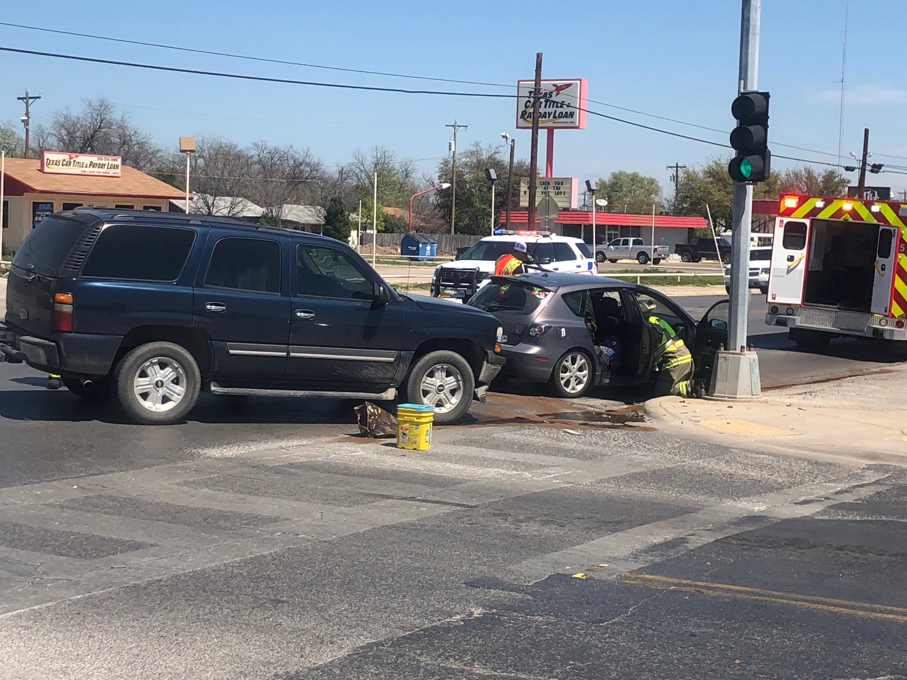 San Angelo Police Department Investigating officer Welch says a gray Mazda was headed westbound and a black Chevrolet Tahoe was eastbound.