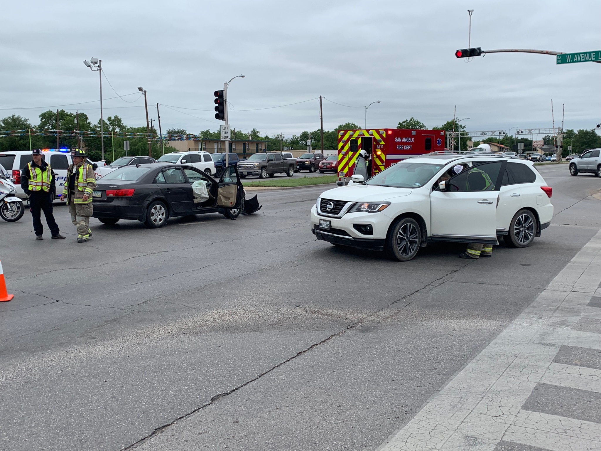 According to San Angelo Police Department Investigating officer Welch, The Pathfinder was southbound on Bryant attempting to turn left onto W. Ave L. The driver had a green light but was supposed to yield to northbound traffic and failed to do so.