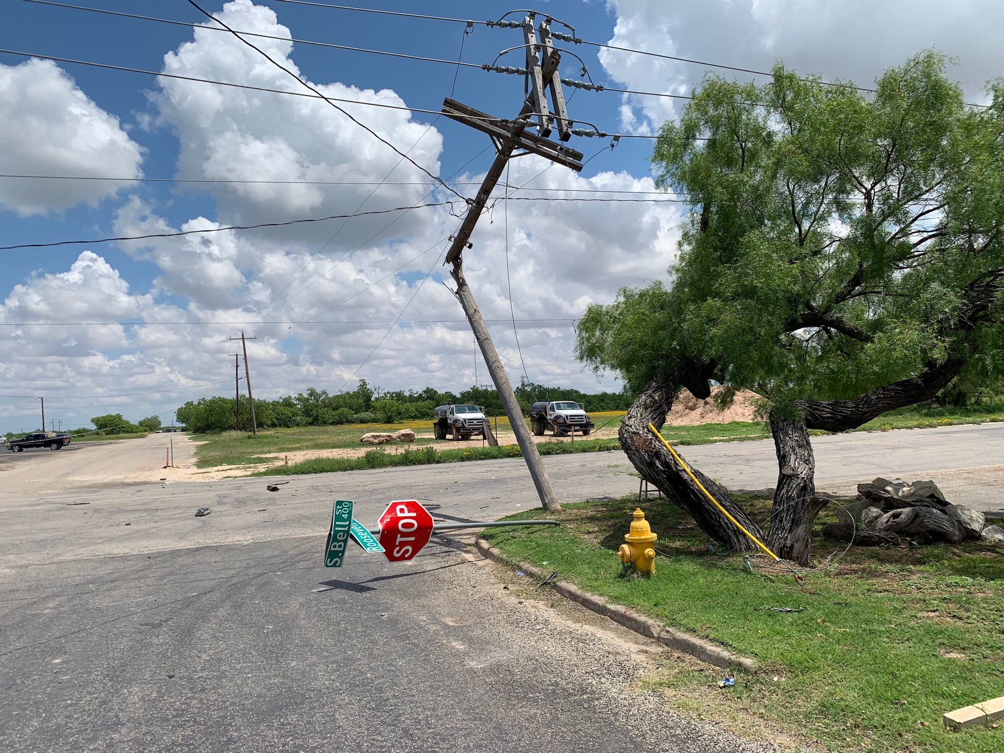 SAN ANGELO, TX -- A Republic trash truck snapped a power pole and downed a stop sign at the corner of Bell St. and Roosevelt Tuesday afternoon.
