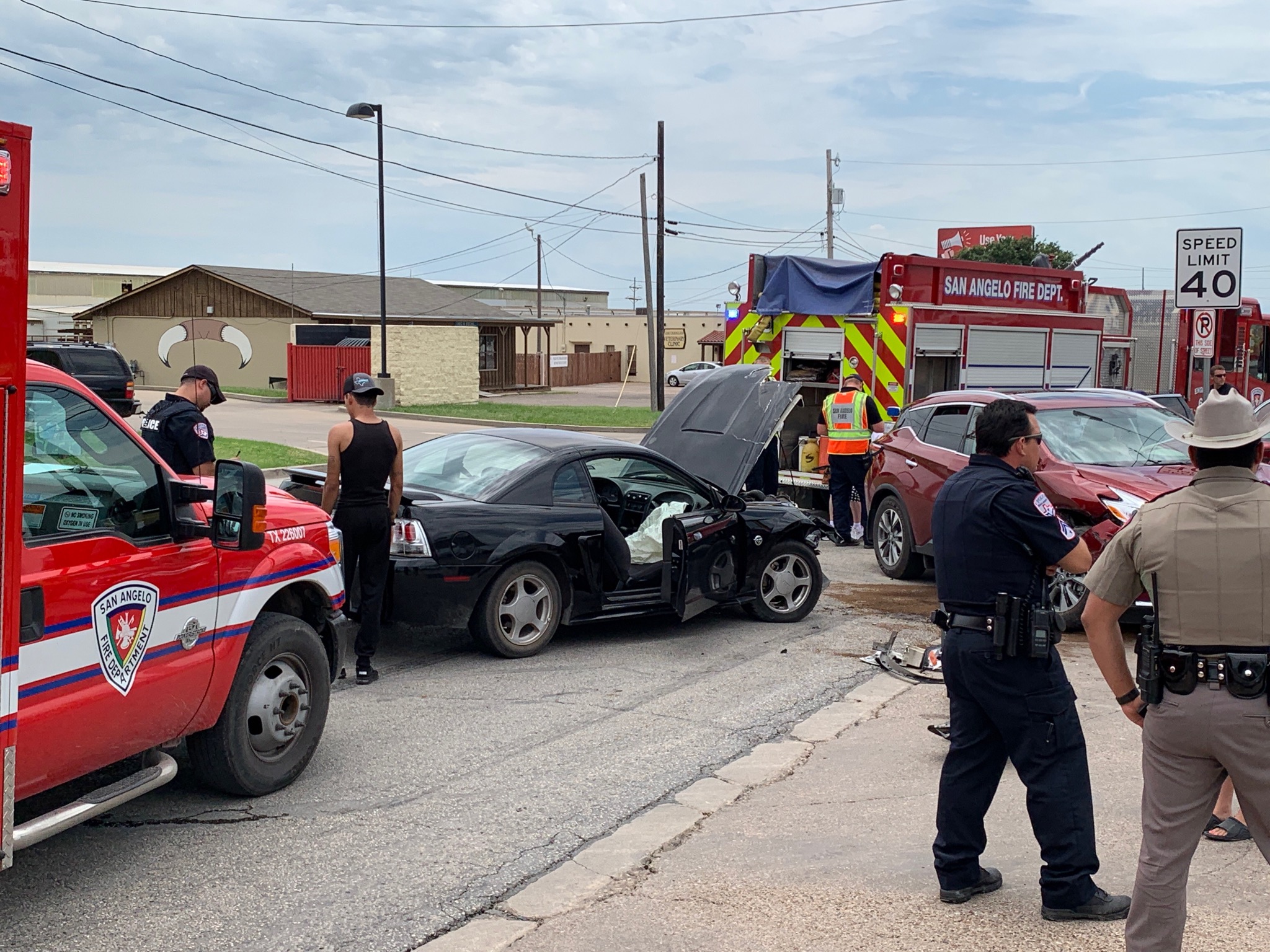 According to investigating San Angelo Police officers at the scene, a black Ford Mustang was westbound on 29th St. and a red Nissan was attempting to turn left into the Stripes Convenience store on the corner.