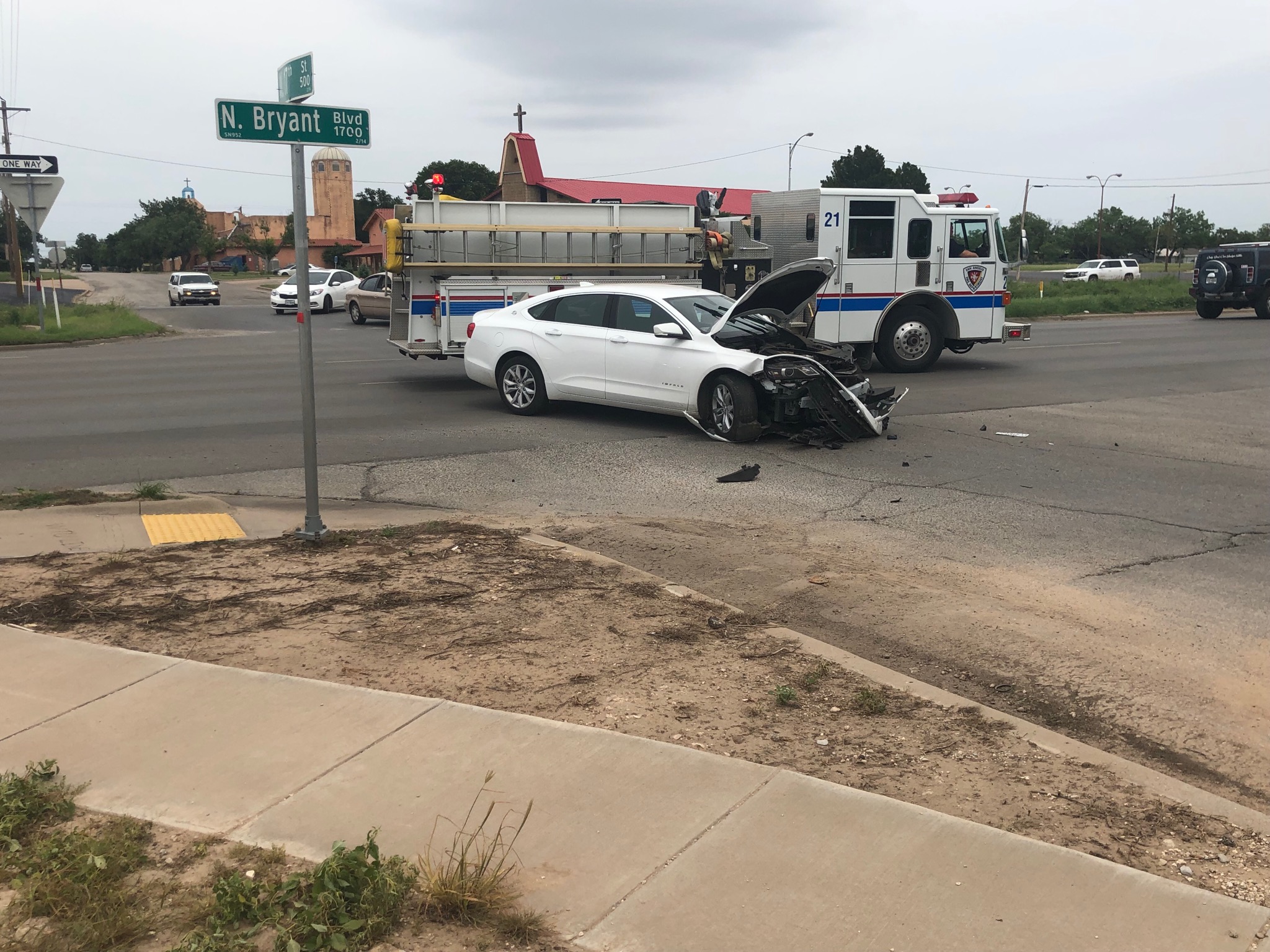 SAN ANGELO, TX -- A white Chevy Impala was souhtbound on N. Bryant Blvd. when it was involved in a crash Monday afternoon at the intersection of 17th St.
