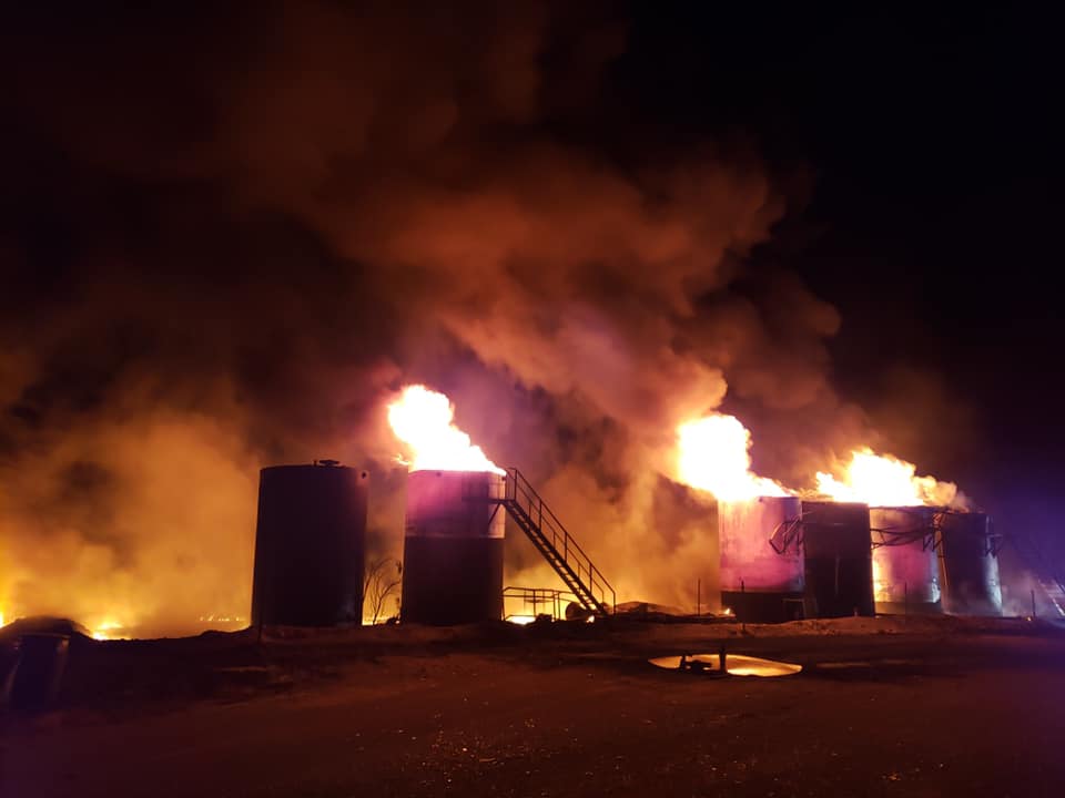 DOVE CREEK, TX -- Volunteer firefighters with from Dove Creek, Christoval and Irion County battled a tank battery fire in southern Tom Green County Thursday night.
