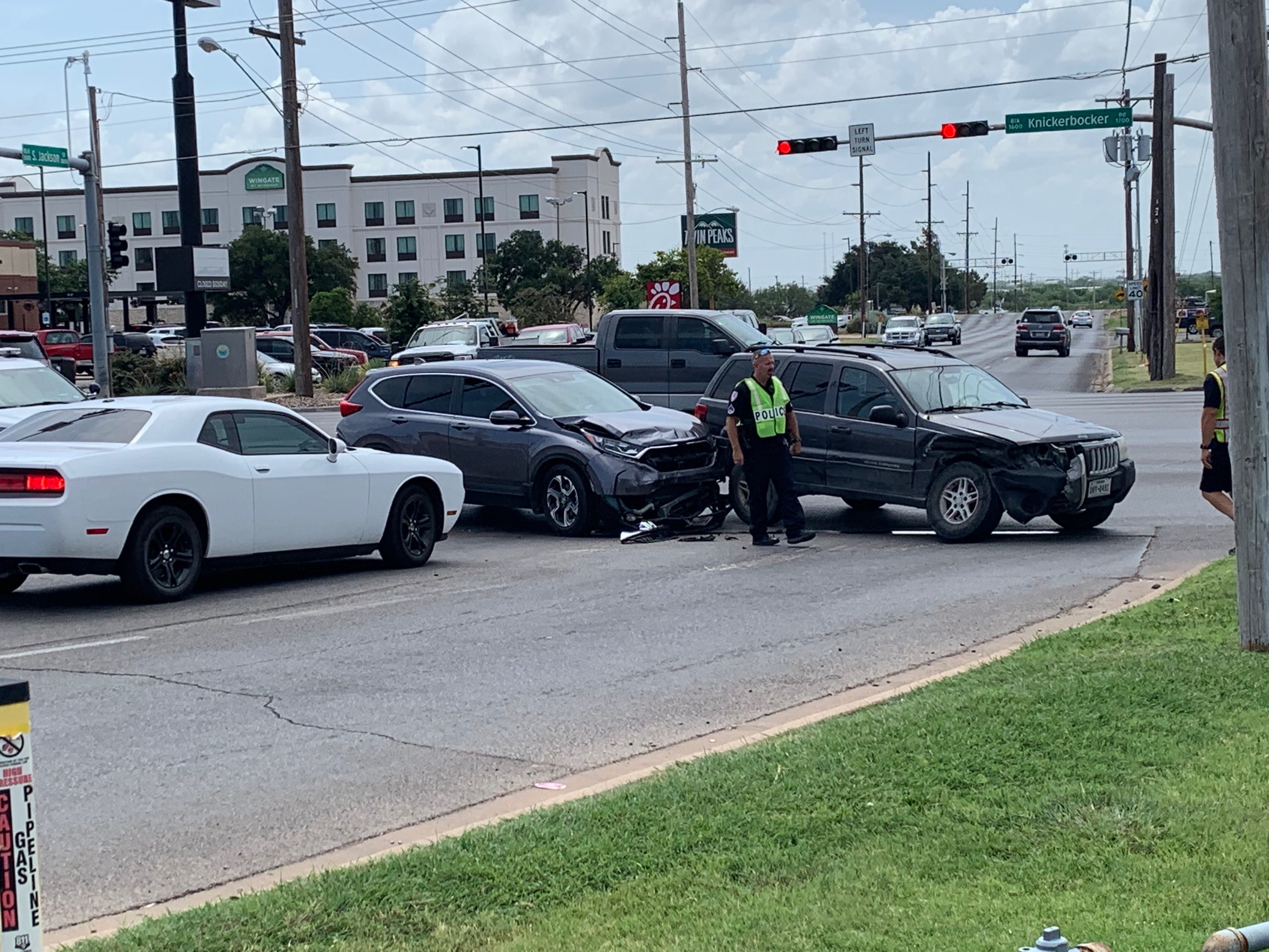 According to investigating officers at the scene, a dark colored Jeep Grand Cherokee was eastbound and attempting to turn left onto Jackson St. from Knickerbocker.
