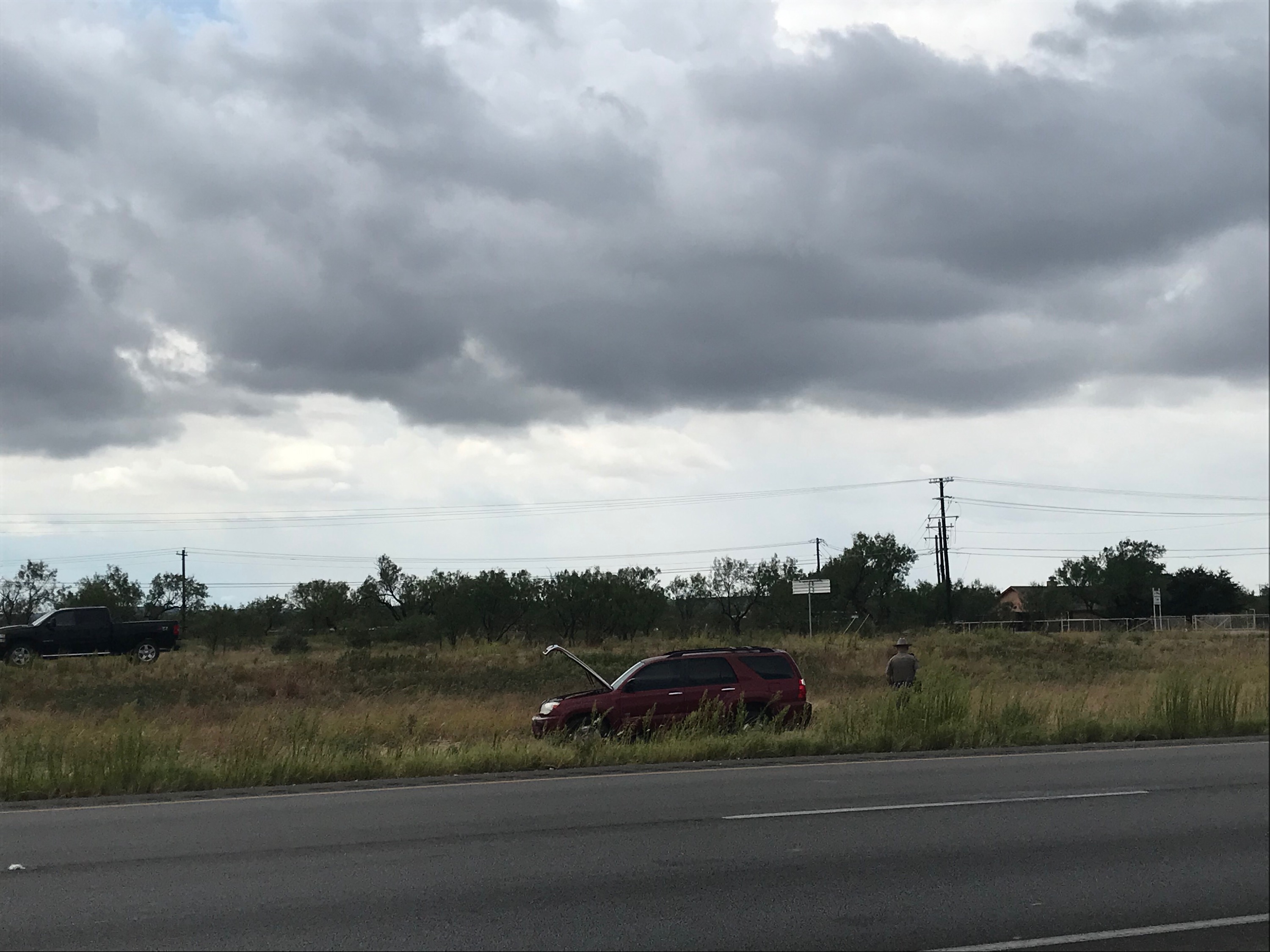 It appears the driver of the vehicle lost control and skidded off the highway on U.S. 87 just past the FM-2288 overpass.