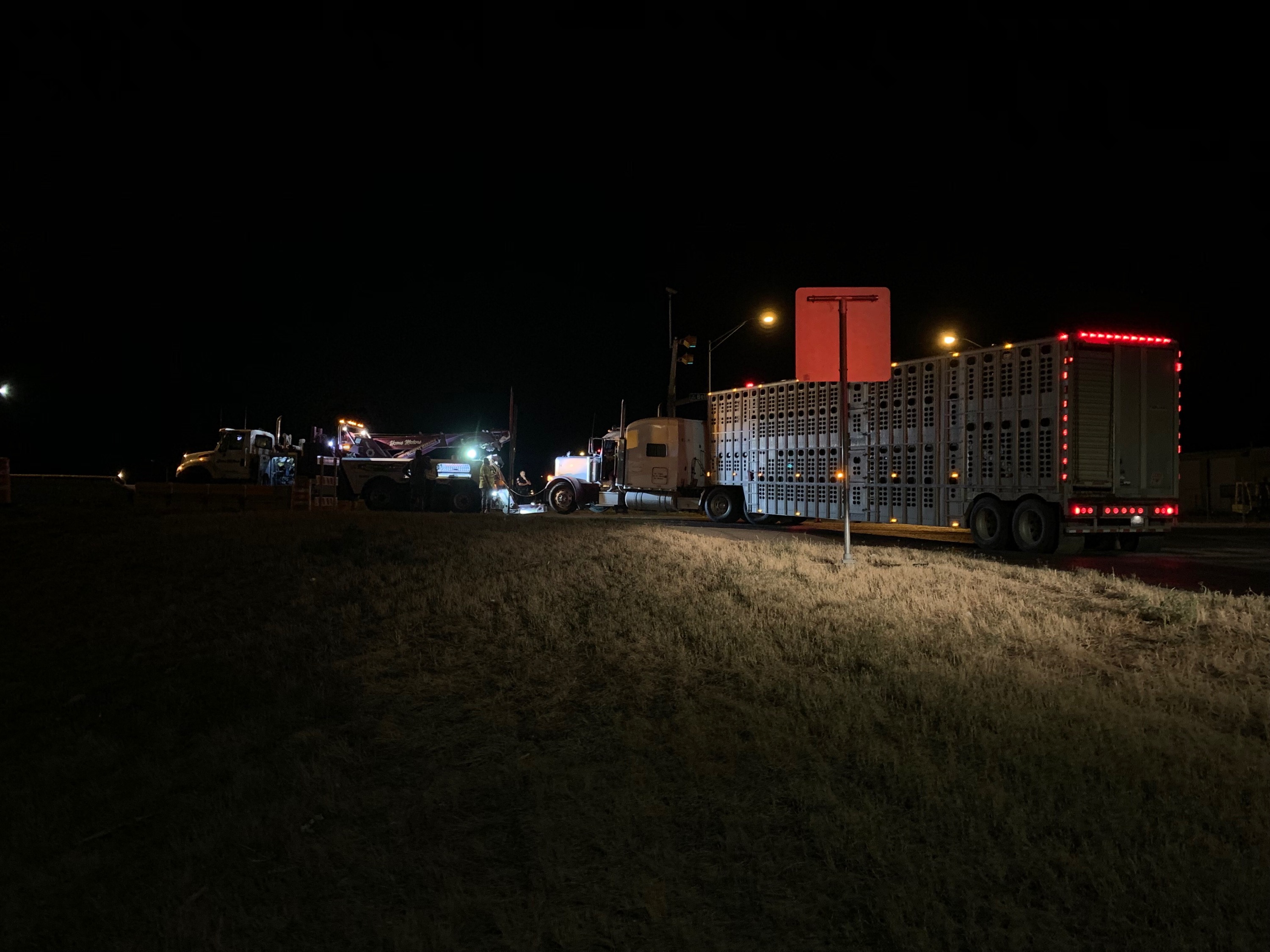 According to witnesses at the scene, the cattle hauler had to be towed.