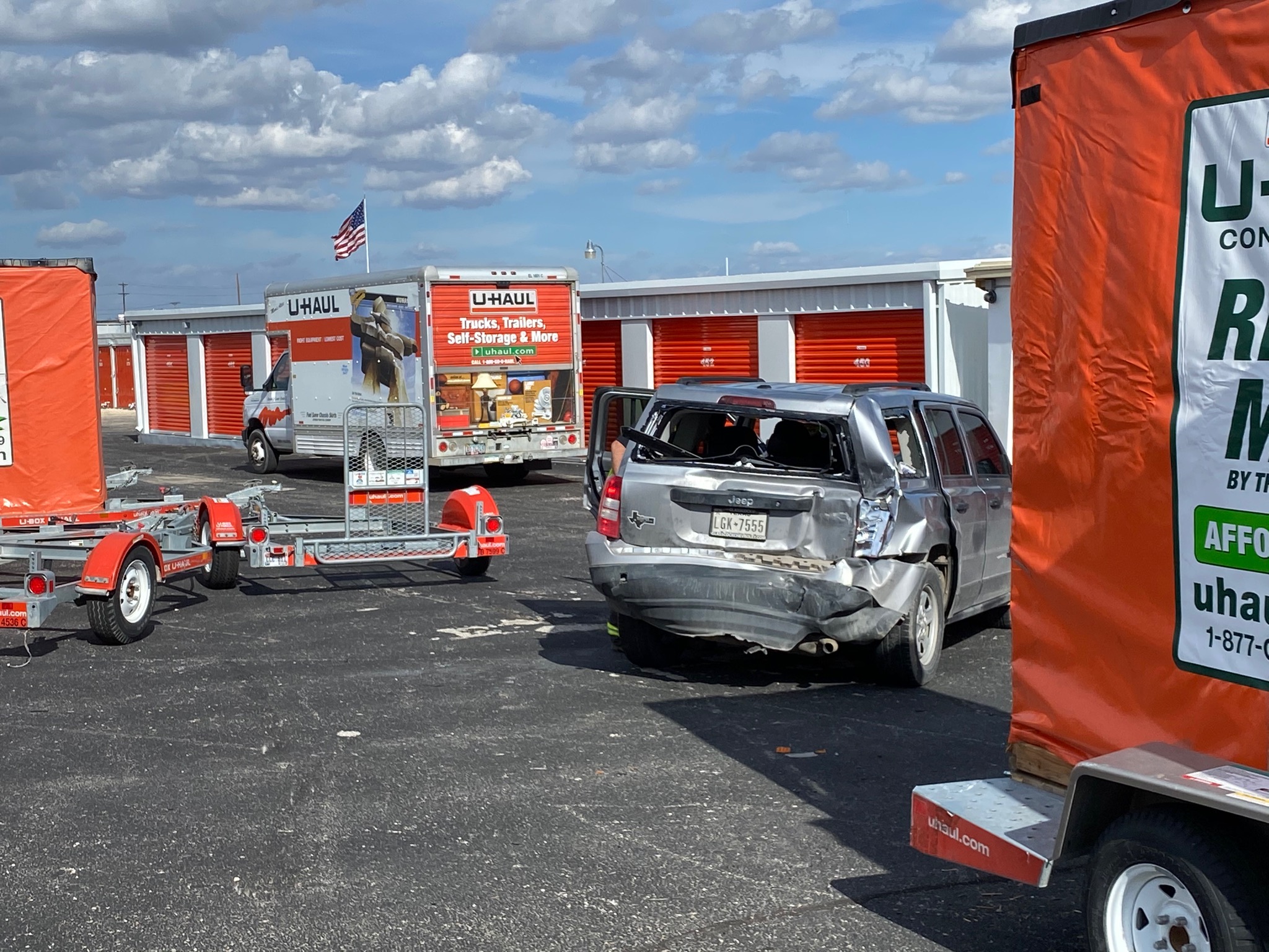 According to SAPD traffic division investigating officers at the scene, one woman was sent to the hospital with unknown injuries when her SUV was struck from behind by a silver Chevy pickup racing with another vehicle down Bryant.