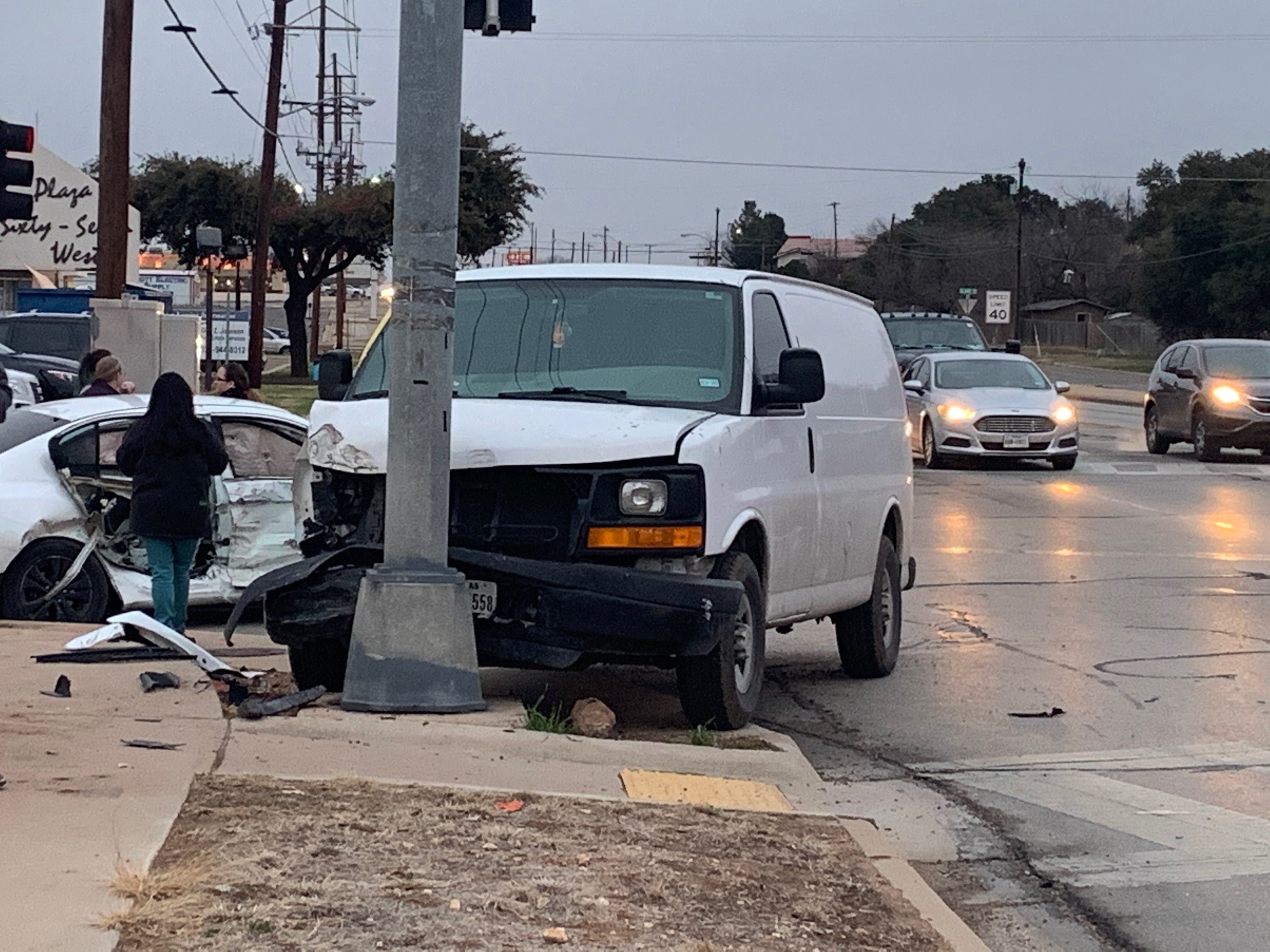 SAN ANGELO, TX – A crash at a busy San Angelo intersection Tuesday evening took out a signal light and snarled traffic on Sherwood Way.