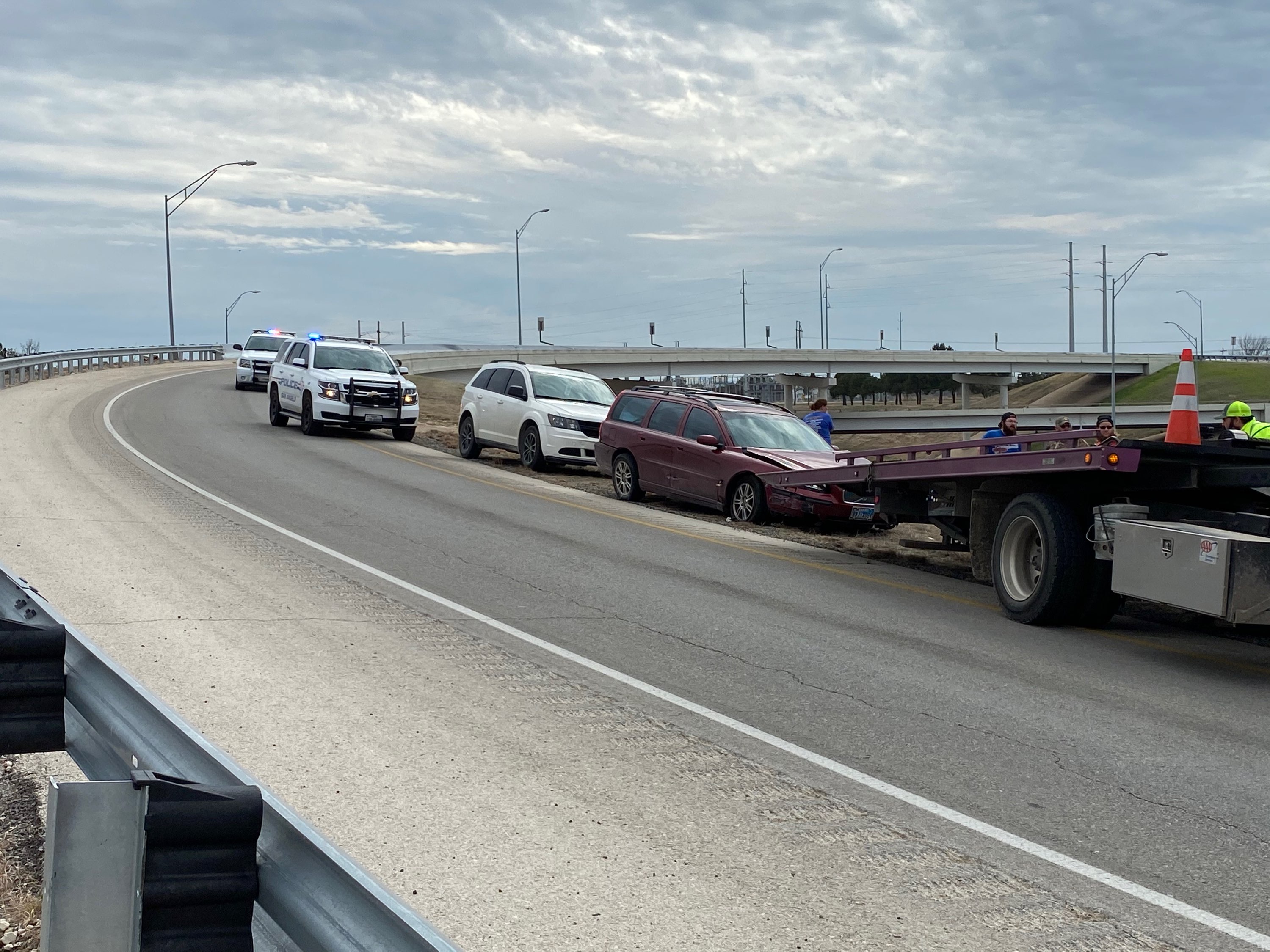 According to San Angelo Police Department traffic division investigating officers, a single vehicle crashed into the concrete railing on the Loop 306 overpass near Ben Ficklin taking eastbound traffic through a curved section of lifted roadway bringing traffic back to US 87 heading into San Angelo.