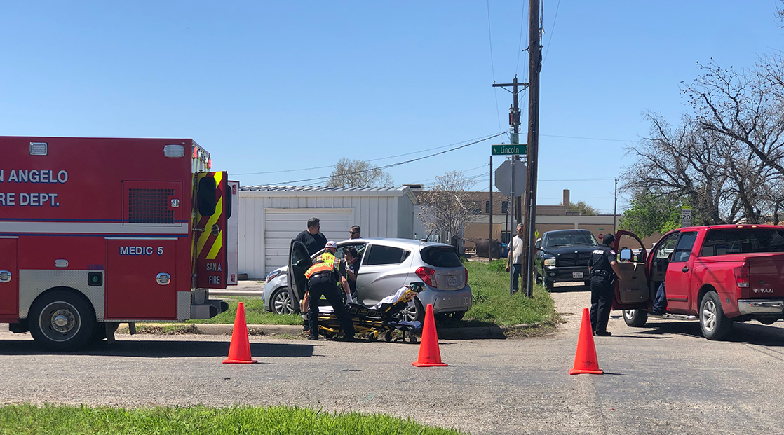SAN ANGELO, TX – The driver of a small passenger car was injured Wednesday afternoon in a crash at a residential intersection in San Angelo.
