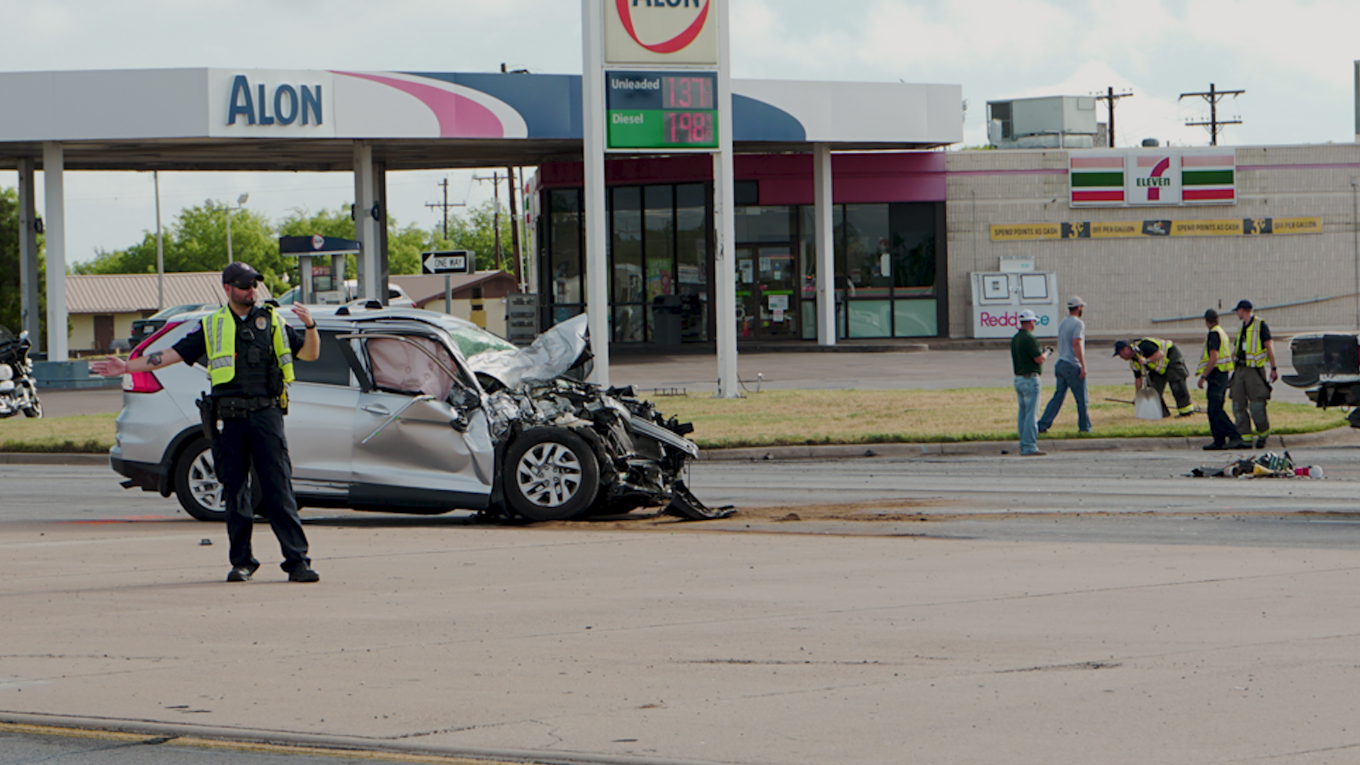 According to San Angelo Police Department Traffic Division investigating officer Solsberry, a white pickup was stopped at the light northbound on S. Bryant.