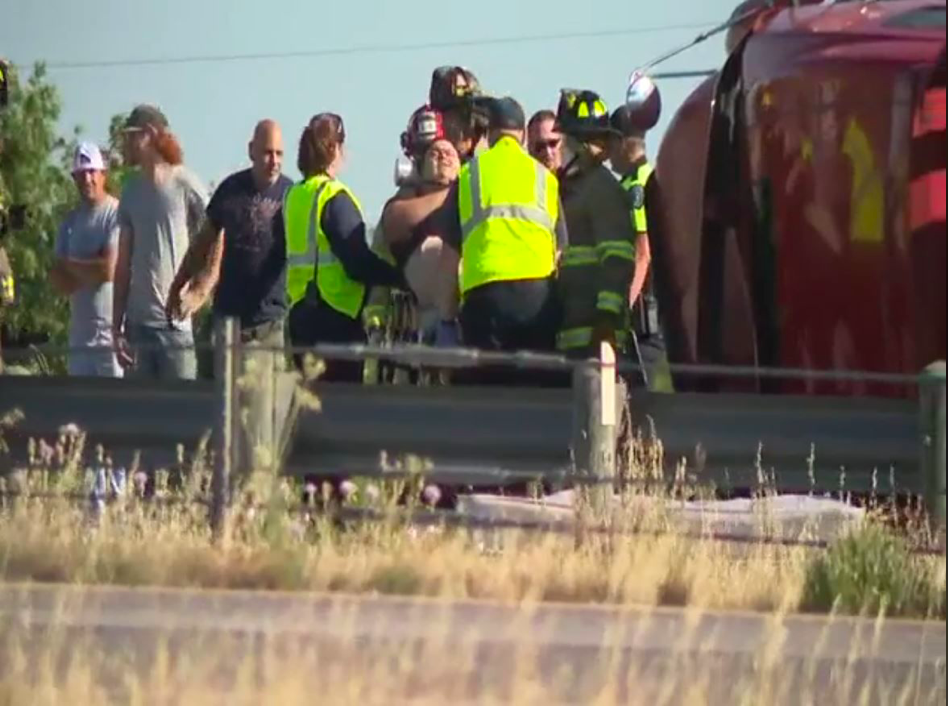 According to KTXS, the big rig rolled over near mile marker 292. Crews were needed to free the driver and the efforts were successful.
