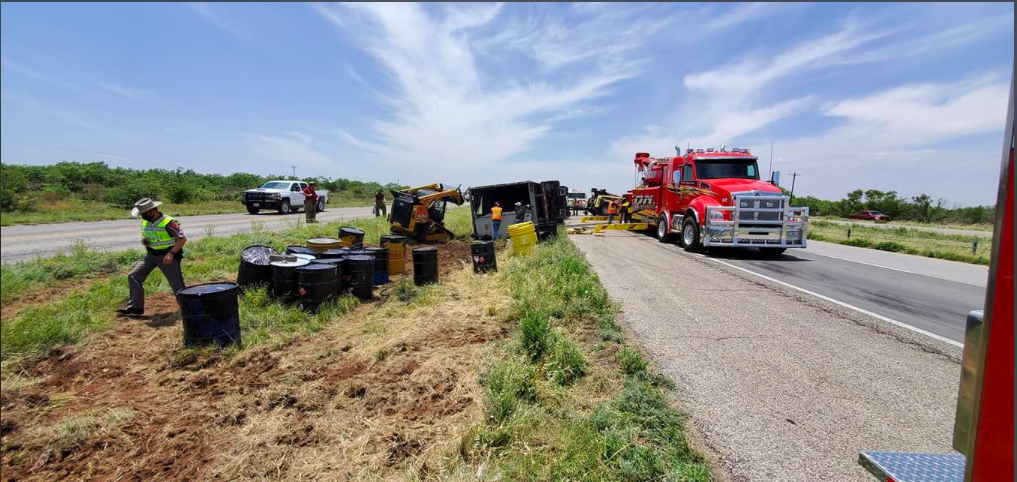 The Tye Fire Department and the Abilene Fire Department HAZMAT units responded to the scene as leaking barrels were removed from the trailer.