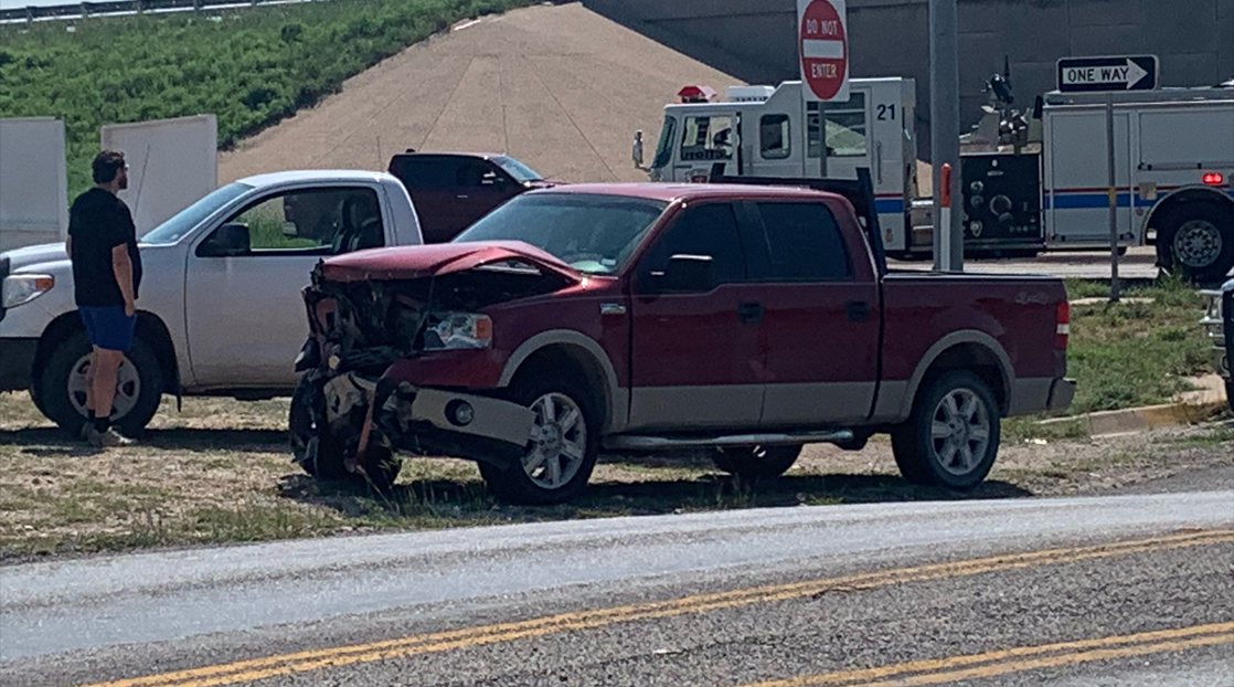 According to SAPD officers, the crash occurred at the intersection of the frontage road and Smith Blvd. The two vehicles involved were a white passenger car and a red pickup.