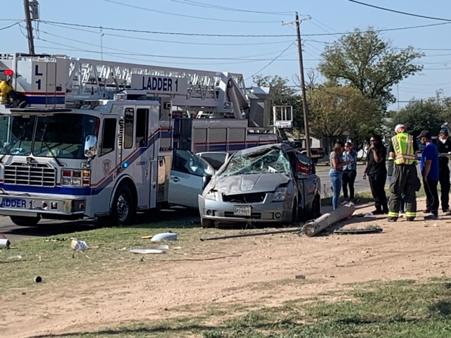 SAN ANGELO, TX – The driver of a silver passenger car escaped injury in a serious crash on E. 19th St. Tuesday morning that took out a utility pole.