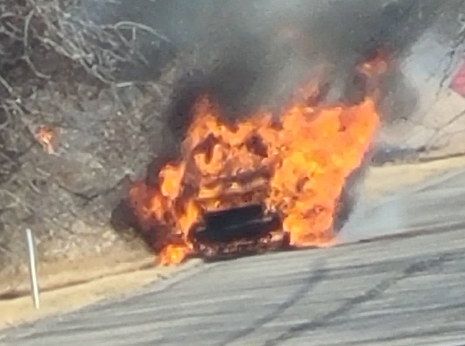 According to reporters at the scene, the vehicle fire also started a small grassfire along the roadway next to the irrigation canal.