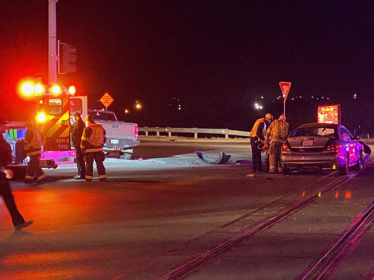 Following the crash that happened at around 10:30 p.m. Saturday night, the driver of the sedan was transported via ambulance to Shannon Medical Center.