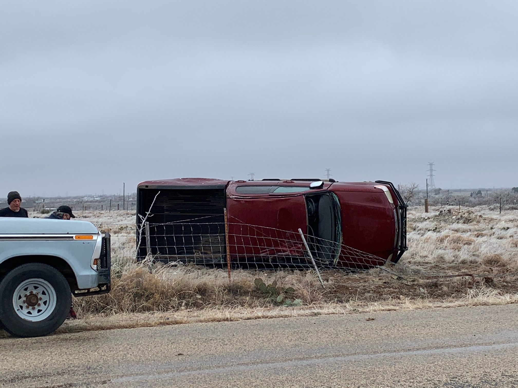 Reporters at the scene say it appears the pickup hit a patch of ice on Runion Rd. about 100 years north of the intersection of Red Creek Rd. in Quail Valley and rolled through a fence.