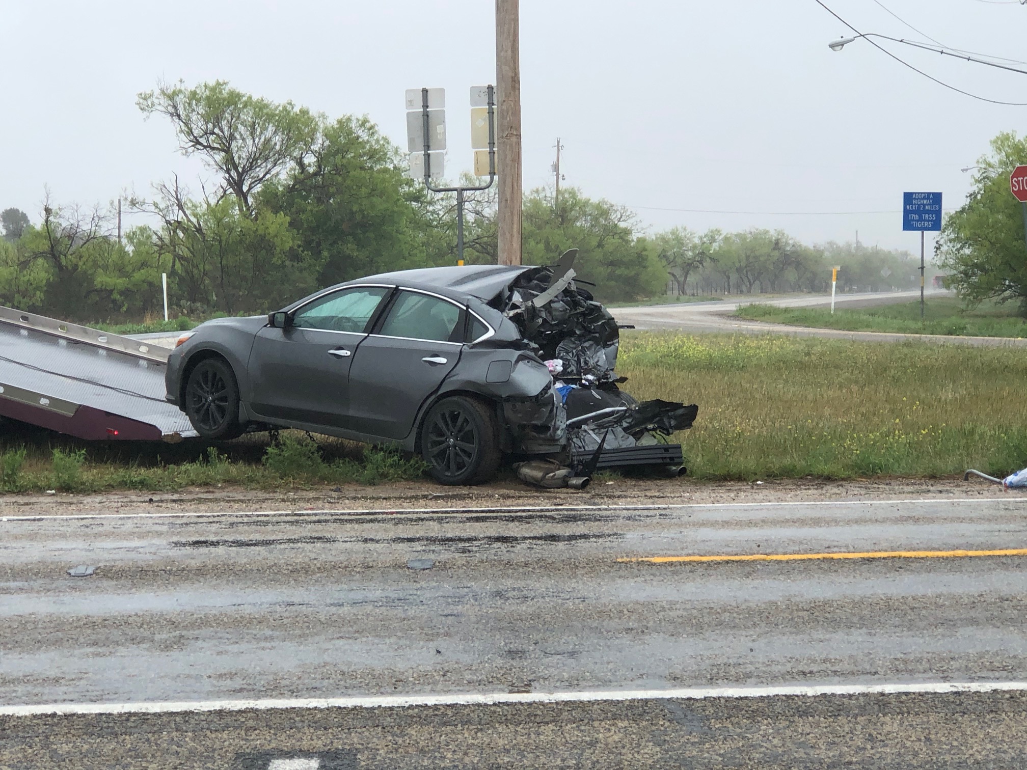 SAN ANGELO, TX – A pregnant woman driver was injured in a high speed crash on S. Chadbourne St. at FM-765 Thursday afternoon on rain slicked roads.