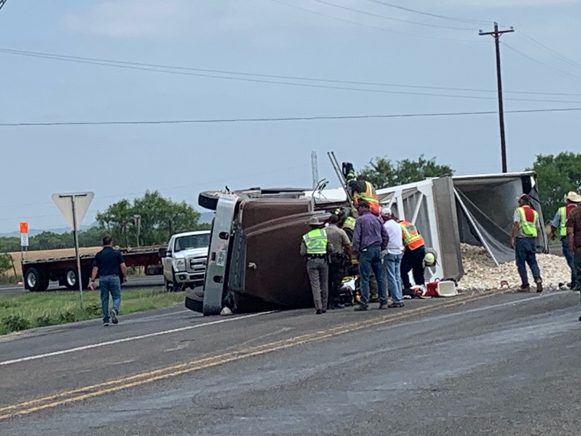 SAN ANGELO, TX – The driver of an 18-wheeler belly dump truck had to be cut out of the cab when the rig overturned while turning onto US-277 from FM-2105 northeast of San Angelo.